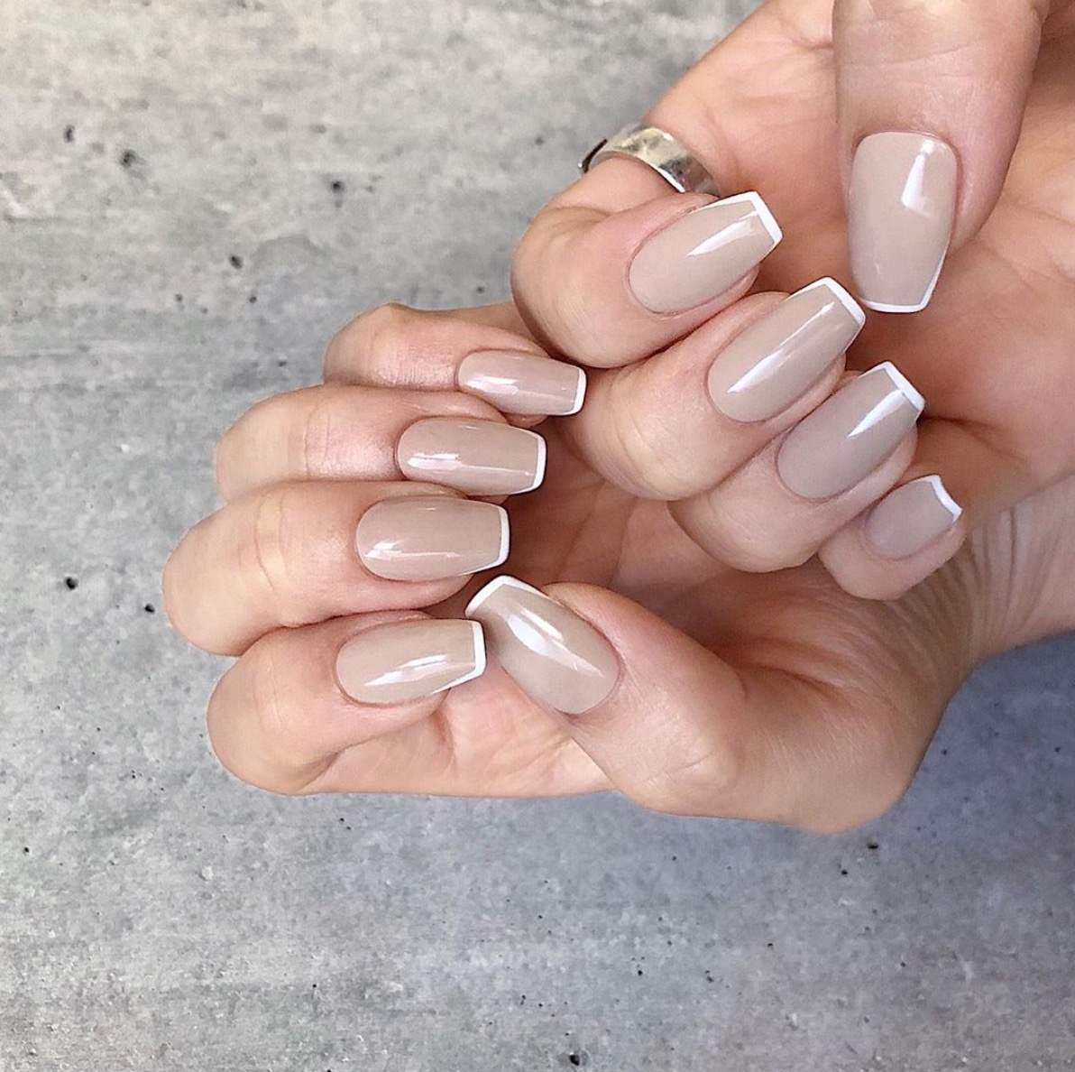第三款則是法式指甲的變身,把一般淡粉色系的部分改成淺淺的奶茶色,運用白色包邊,整體看起來意外的溫柔婉約,雖然整體色彩比較淺,卻是非常適合秋冬的顏色呢!