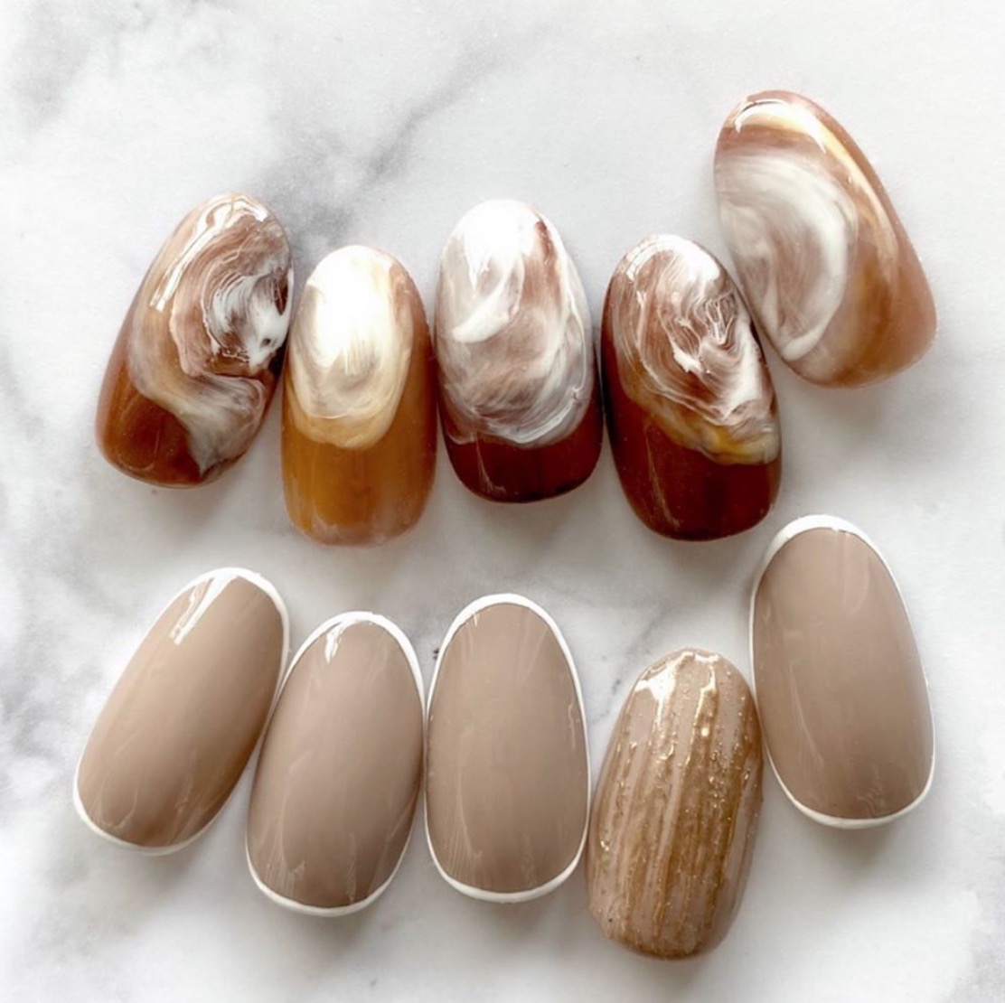 【2020秋冬美甲】盤點6種「奶茶色美甲」質感爆棚,溫柔 #大理石融化風仙女必試