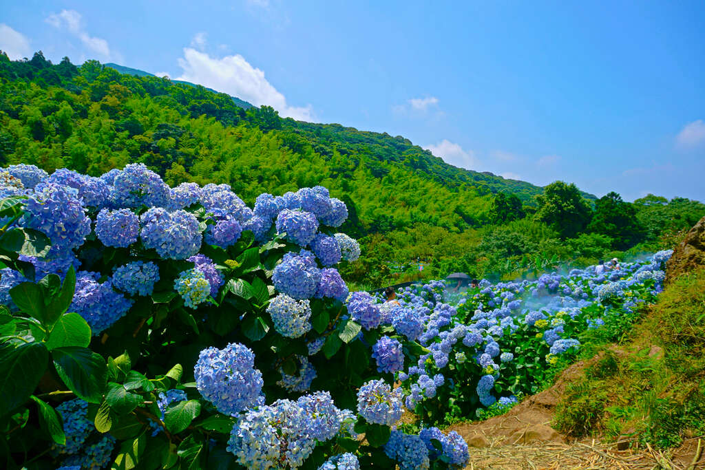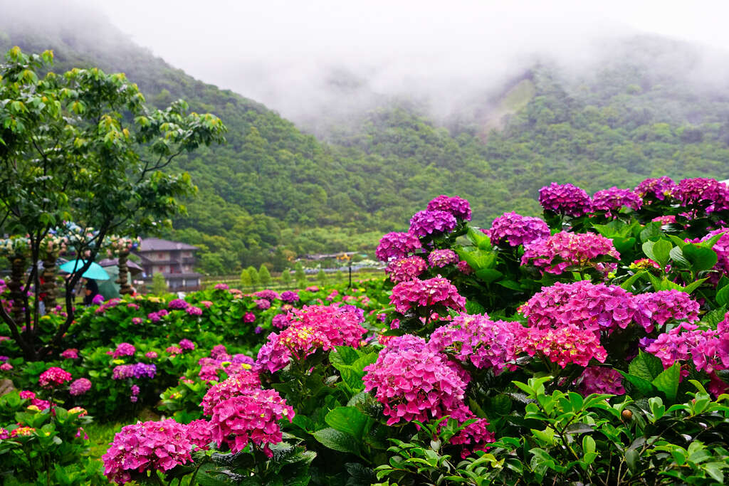 滿山滿滿的繡球花,遍地開花實在太美了~位在台北市的陽明山繡球花花季正是從每年的五月中旬開始!一大片美不勝收的花海就是超適合拿來拍畢業照的啊~尤其黑壓壓的學士服搭配一片綠油油的樹葉,再加上紫色、桃紅色的繡球花點綴,就是怎麼拍怎麼美!