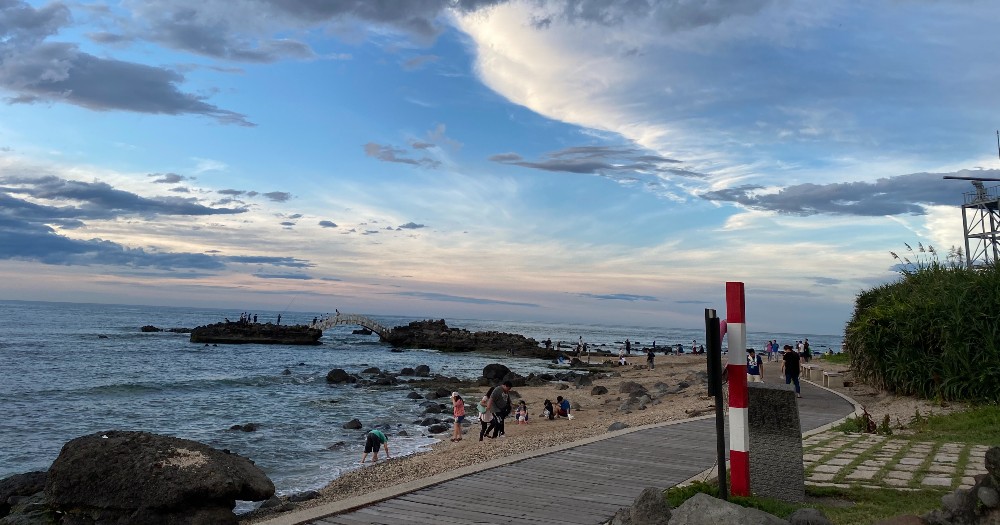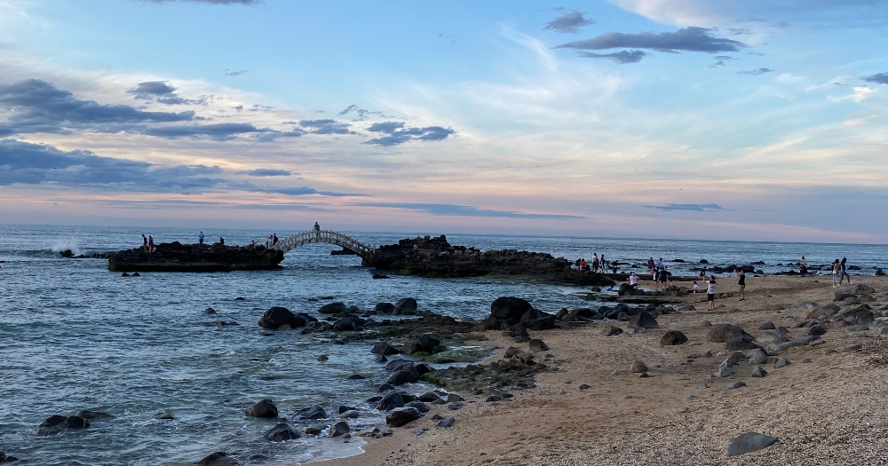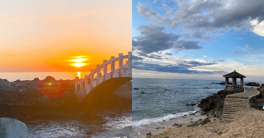 首先是海景第一排的北海岸「石門洞」!有著超神秘的海岸色彩,堪稱最療癒的絕佳拍照景點,白天是璀璨的晴空藍天,看得到棉花糖般的白雲,更有看過去一望無際的寬闊大海,畢業照想怎麼拍都美瘋,除了天然的岩石拱橋還有小涼亭,等到夕陽西下的時段更是美到不行的啦!