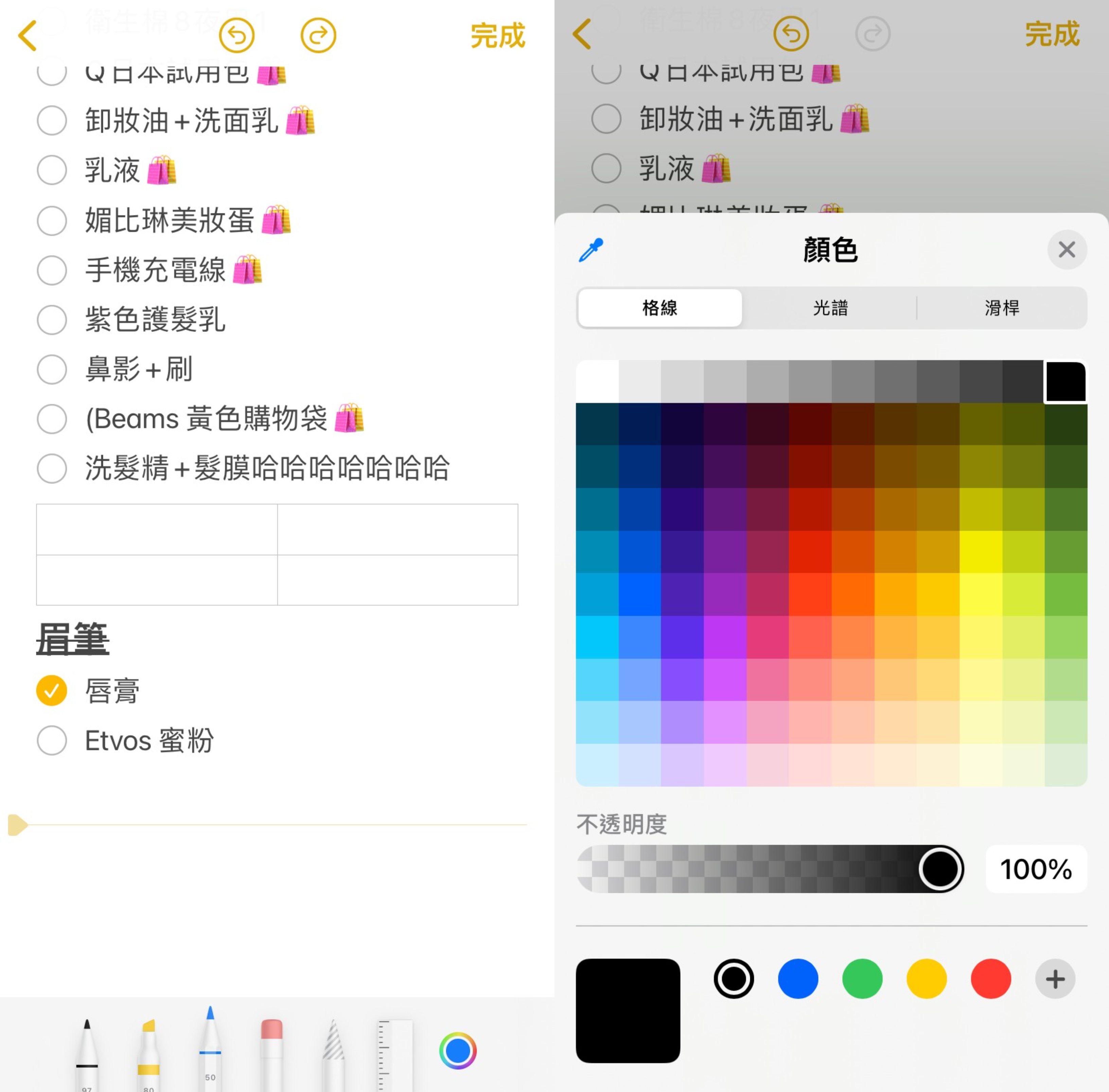 在APP最下排,一打開就可以看到四個黃色小圖示,分別是打勾勾的小圓圈、相機、筆刷、跟最基本的編輯,開起打字功能後可以看到最右下角有個灰色+號,點開立刻能看到小表格,用來統整雜事超好用!