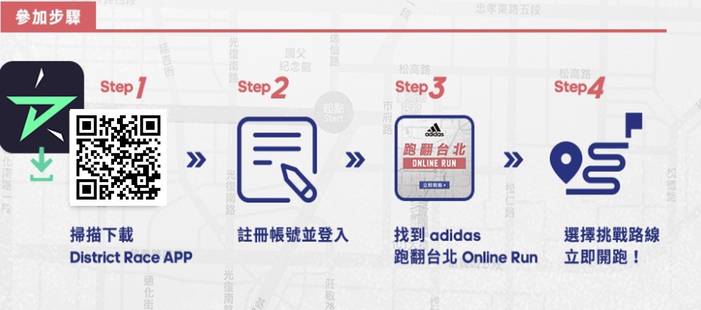 找不到朋友約跑嗎?那就讓adidas的12條城市Online run陪你跑翻台北吧!搭配情境問答、體能訓練和計時衝刺等有趣關卡,運動過後還提供溫泉與夜市小吃等主題休閒引導,就算自己一個人跑也很有動力!只要下載District Race APP,完成帳號註冊及登入,點擊adidas跑翻台北Online Run關卡即可選擇喜歡的路線,即刻開跑!另外,今年12/20以前只要參加跑翻台北Online Run的挑戰就有機會獲得Supernova臺北馬拉松限定鞋款,完成越多條路線、累積越高的積分,得獎機會就越高,完成5條路線且每條路線皆高於3,000積分者,還可以直接獲得adidas Runners Taipei背心一件,秋季瘦身還能拿好禮,是不是超划算阿~