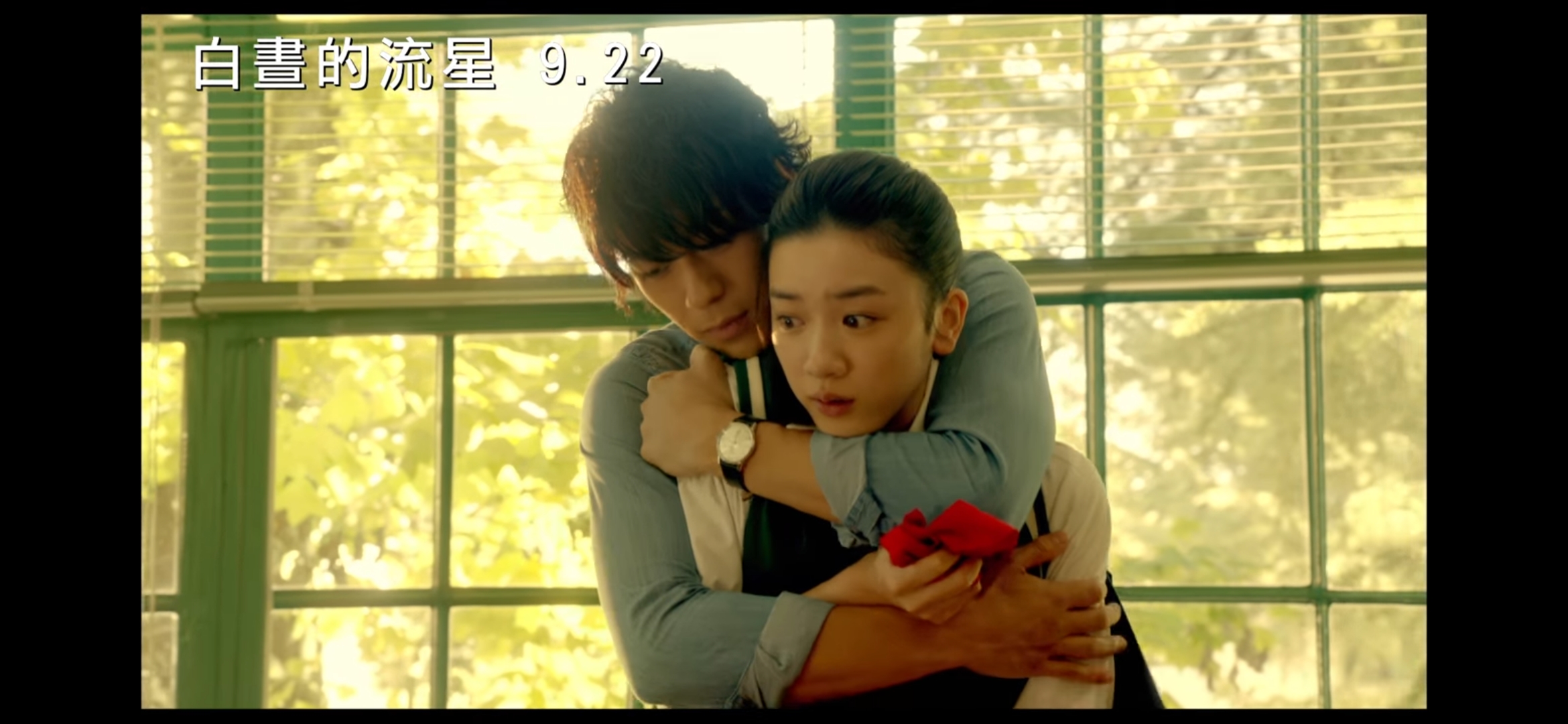 暢銷215萬冊、被譽為「初戀聖經」的同名超人氣漫畫改編電影《白晝的流星》, 講述因為父親被外派到海外工作,從鄉下轉學來到東京念高中的純真呆萌少女與謝野雀 (永野芽郁 飾),第一天就人生地不熟迷了路,幸好巧遇好心協助的獅子尾(三浦翔平 飾)才得以解圍。沒想到獅子尾竟然是自己的新班導,對老師以往未曾有過的情感漸漸在她心中萌芽,最後忍不住向老師表白,面對雀的直球對決,為人師表的獅子尾該怎麼面對這份情感呢?