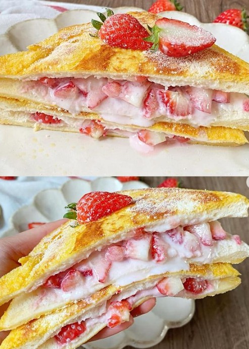 草莓季來了!簡易4步驟自製「爆漿草莓優格法式吐司」,滿滿餡料一口咬下超幸福~