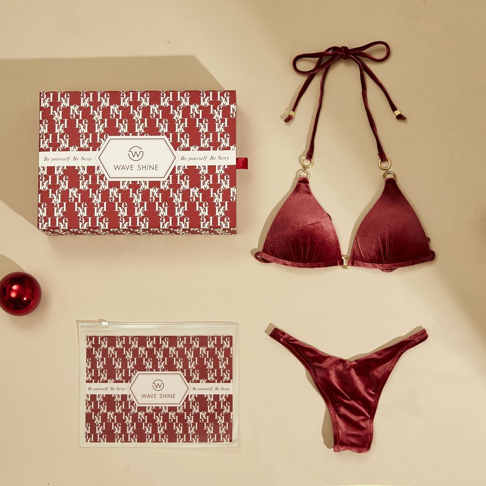 繽紛的聖誕節,當然需要最有冬季氛圍的比基尼啦!大勢品牌WAVE SHINE以「Christmas Rhapsody聖誕狂想」為主題,強勢推出今年聖誕最辣的禮盒。質感絨布搭配搶眼金屬飾環,讓妳展現性感的同時散發奢華氣質,絕對會是今年最辣的聖誕驚喜!