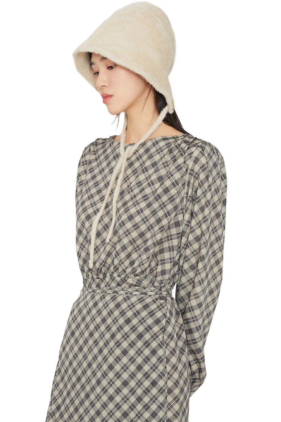 絨毛水桶帽比較常用來和長洋裝,或是牛仔褲等做搭配,這款帽子的長度較長,可以擋住耳朵周圍的冷風,另外帽子有額外再做綁帶設計,綁上蝴蝶結也看起來非常有氣質,推薦給想走氣質路線的女孩,今年秋冬非常可以購入一款綁帶水桶帽喔~