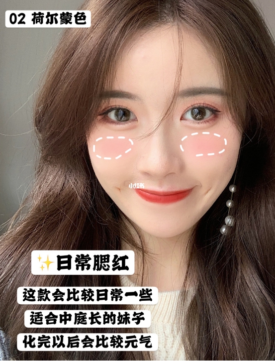 接下來是大家都熟知的「日常腮紅」,不僅可以外出約會畫,很多韓國女團的妝容也會使用這種在臉頰中間處輕拍上色的技巧,一眼就能看得到妝容的重點,元氣滿滿!