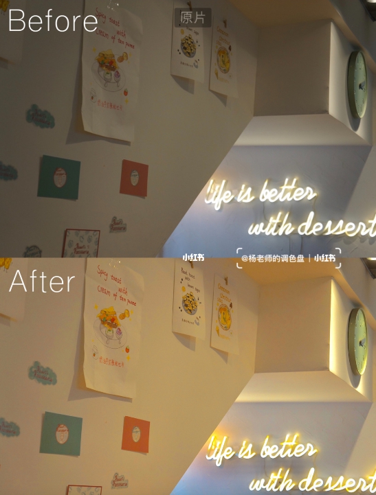 這類的色調很適合用在房間、純白色咖啡廳等地方,暖黃色調帶來一絲溫暖的氛圍~
