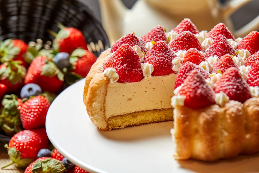 今年草莓季強勢回歸的「草莓芙蕾雅夏洛特」,以歐洲傳統手指餅乾圍邊、海綿蛋糕為底,加上法國特有的BAVAROISE(奶香蛋黃餡),口感近似慕斯,再擺上滿滿的草莓與鮮奶油製成的原味香緹作為點綴,入口先感受到手指餅乾的外酥內軟,接著是濃郁柔滑的內餡與鬆軟的海綿蛋糕,絕對讓人一口接一口、完全停不下來!