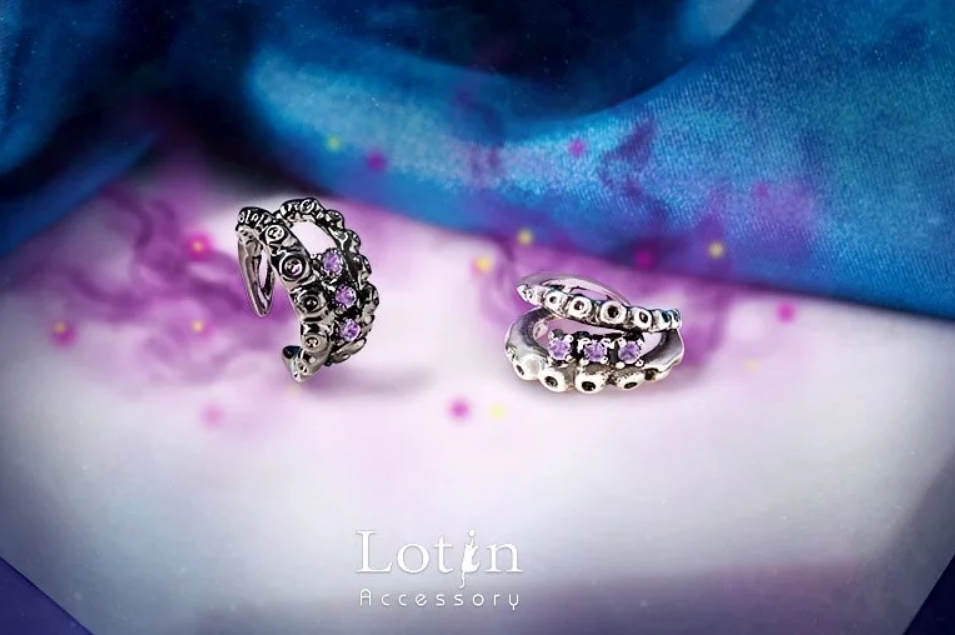 提起迪士尼動畫《小美人魚》中的烏蘇拉,大家是不是都會先聯想到她邪惡的外貌以及肥大的章魚腳呢?這次LOTIN團隊以烏蘇拉的章魚腳為設計元素,並在吸盤上鑲上代表烏蘇拉的紫色鋯石,低調卻不失時尚感,合金的材質,方便大家微調尺寸,各種場合都很適合佩帶,送禮、自用兩相宜!