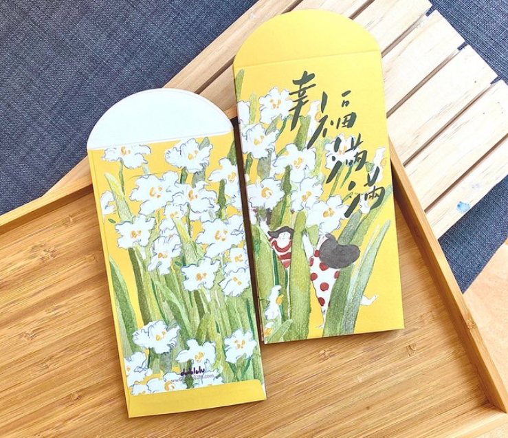 大膽的鵝黃色配色,加上滿滿的花朵插圖,這種創新的紅包設計看起來不會過於正式又能表達心意,也很適合送給身邊年紀相仿的朋友喔~