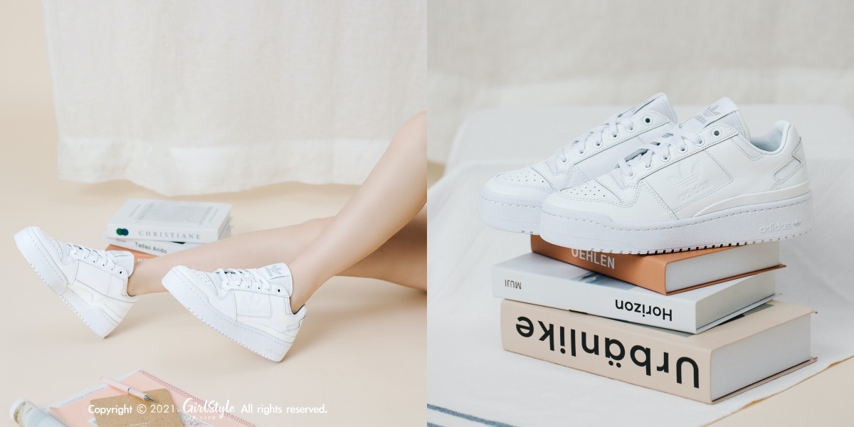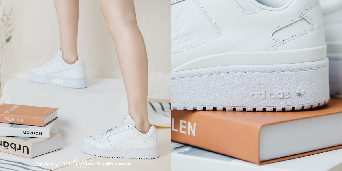 【2021爆款女潮鞋】懂穿球鞋的女孩,真的讓人一點抵抗力都沒有!adidas Orignials FORUM 經典小白鞋升級!雙倍修身、一秒成為又甜又帥氣的腿長妹子!