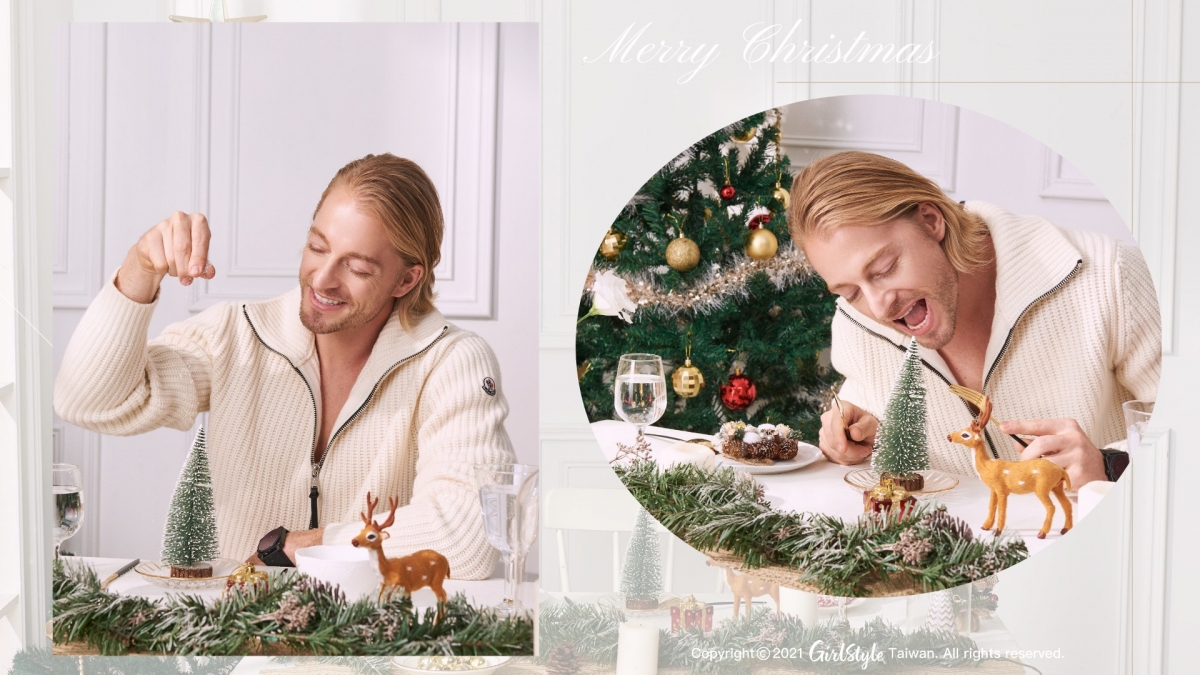 歲末將至,總是用心過節的法比歐對自己的聖誕派對有什麼規劃呢?他覺得有幾個不可或缺的必備元素,像是聖誕裝飾、美食跟喜愛的親友們。而熱愛料理的他,也會準備燻鮭魚和鴨胸肉等等拿手菜餚,法比歐認為其實聖誕節不用只拘泥在那一天:「這陣子都可以把家裡佈置的很有氣氛,讓寒冷的冬天都會很期待回到家的瞬間。」而去年開始他會在聖誕節時去花市採買植物,並邀請朋友到家中一起製作手工花圈,對法比歐來說這是個互相分享、陪伴的溫馨季節。