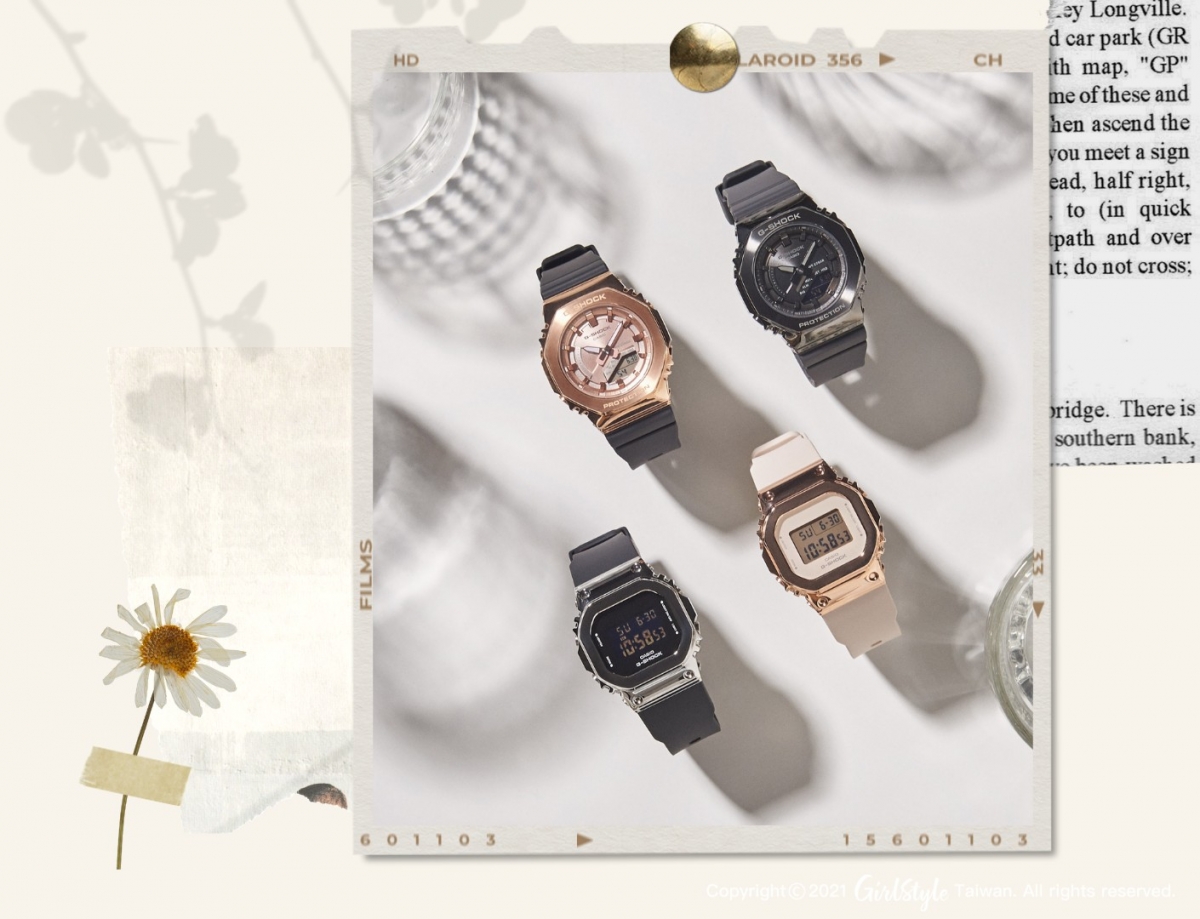 光看就想戀愛的玫瑰金色澤,浪漫開啟少女心? 完美融合了八角形經典設計,以細節感滿滿、精緻美麗的外型,加上多款配色的選擇,不僅襯托出質感錶盤,也呈現出多變的穿搭印象,時而柔和,時而俐落時尚,「GM-S2100八角金屬錶殼系列」就是要助攻妳的每個造型風格,提升迷人好感度!