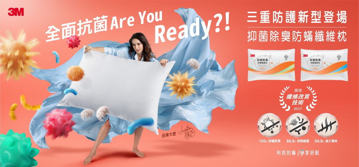 美商3M台灣子公司消費產品事業群寢具用品大中華區產品經理王惠麟表示:「3M新生活科技防蟎寢具始終傾聽消費者需求與時俱進,全新生力軍「3M抑菌除臭防蟎纖維枕」與最新的纖維改質技術接軌,讓長踞市場熱銷的防蟎枕心升級再進化,不但保證100%防蟎效果,更添加抑菌和除臭特點,希望在人心惶惶不安的疫情之際,持續帶給消費者安心清淨的舒眠感受。」