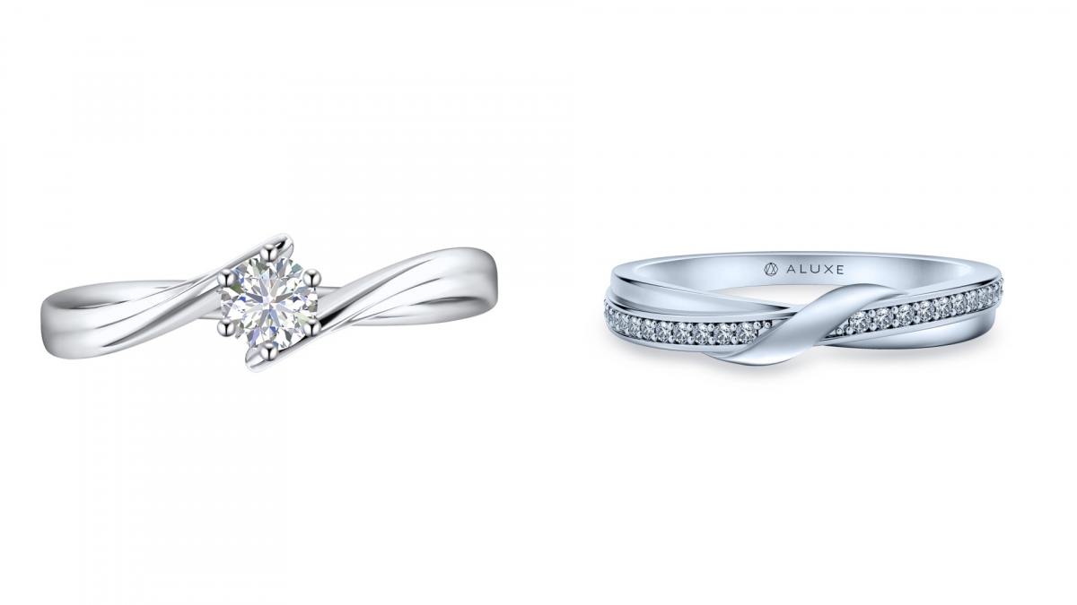 ALUXE亞立詩A LOVE系列內含五組婚鑽戒,包含第一封情書 Say Love、默契 A Wink、第一支舞 First Dance、約定 Love Knot、環抱 My Only新品,各系列內含1只求婚鑽戒和1對結婚對戒,每組設計靈感皆來自於戀人在愛情旅程中最浪漫的經典時刻。從互訴心意、有默契眨眼的瞬間,到兩人在舞池裡旋轉耀眼並許下約定,彼此環抱著給予堅強依靠,每一個幸福瞬間,ALUXE亞立詩都始終相伴。