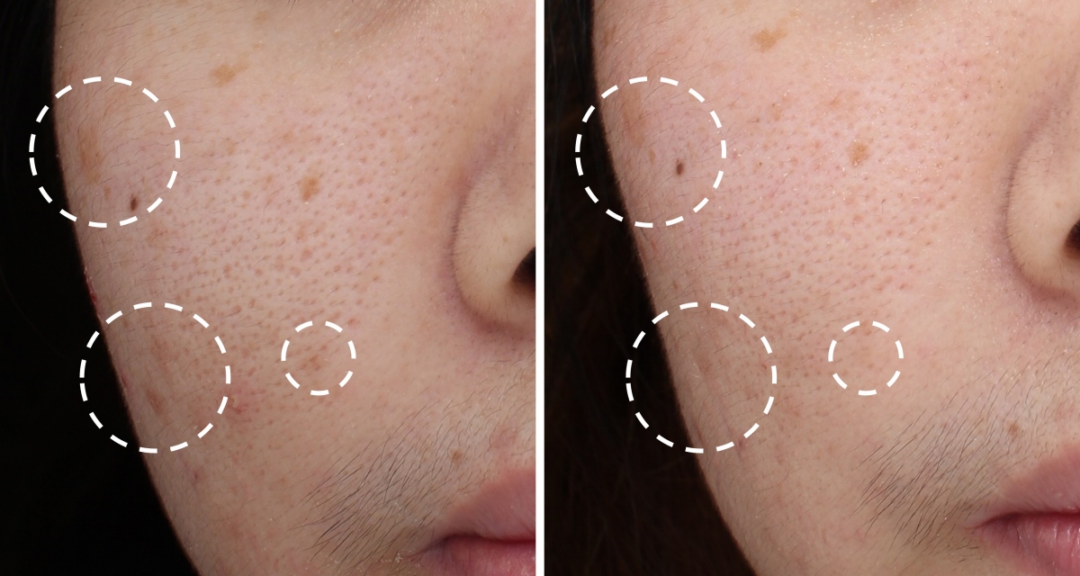 ↓ 超真實無修圖!連續使用 21 天後,原本臉上惱人的斑點瑕疵明顯淡化,膚色也更均勻~