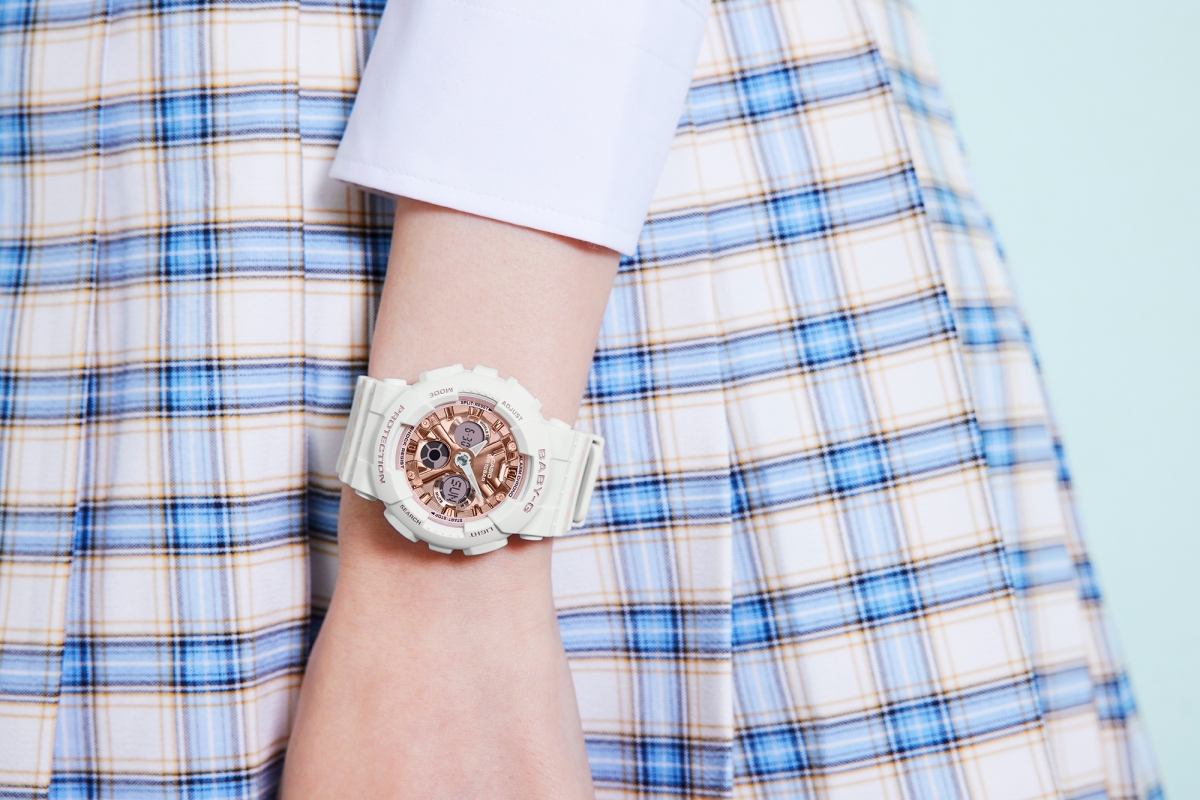 另外喜歡簡約款式的女孩,可挑選寬錶面和纖薄設計的BGA-290DR系列,指針和錶圈內側都帶有隱隱約約的迷幻色彩,圓潤的造型更多了幾分優雅氣質~俐落的深色手錶則凸顯獨特魅力,營造出手腕間的時尚感!