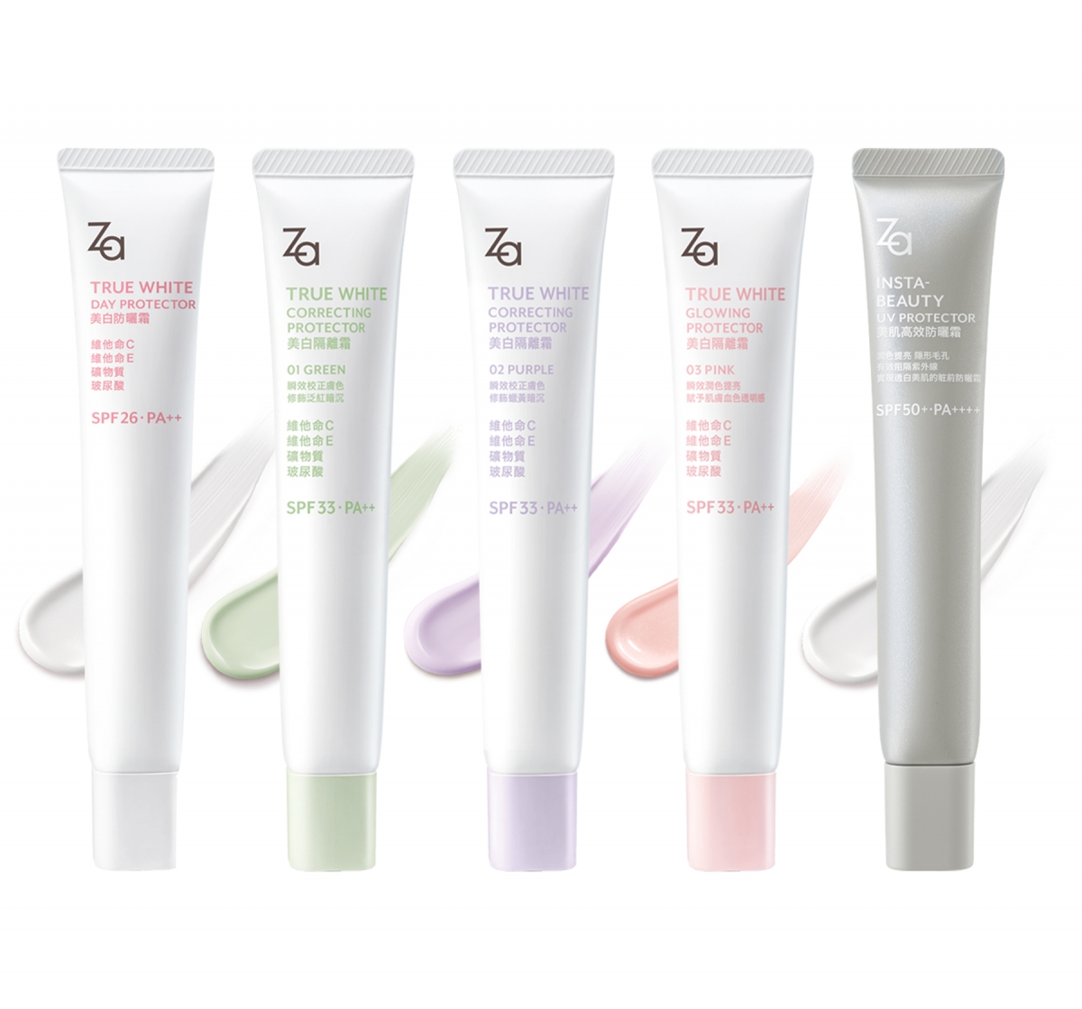 身為開架No.1粧前霸主的Za美白防曬霜家族,在2022.04將加入全新生力軍Za「美肌高效防曬霜」,目前全系列共有5款品項,可全方位應對不同肌膚困擾:
