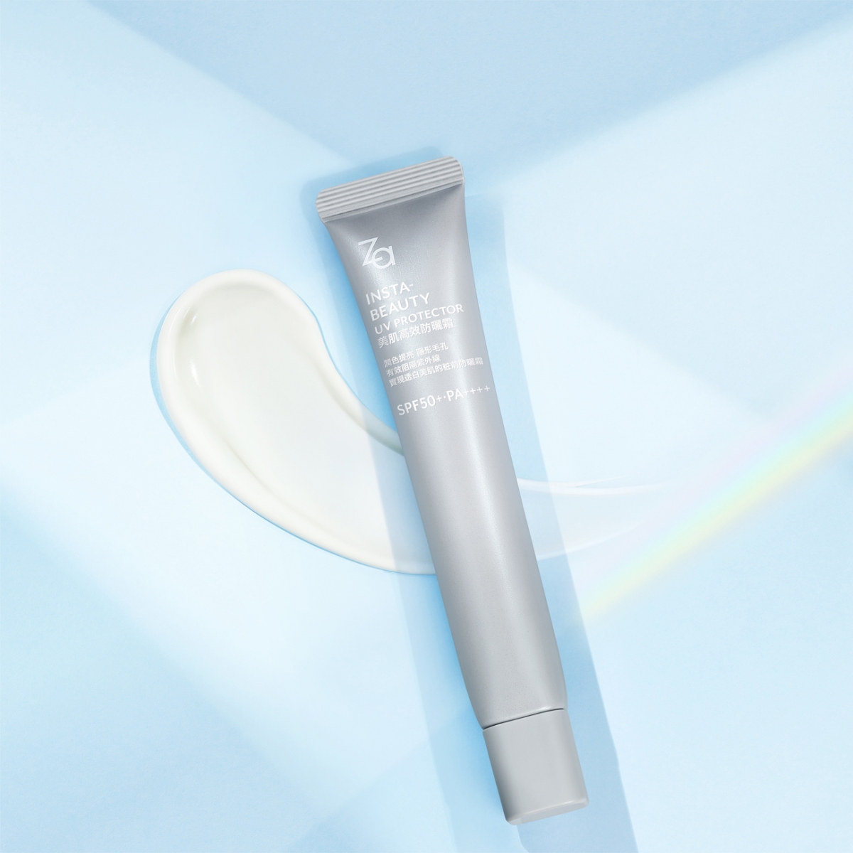 全新登場的Za「美肌高效防曬霜」除了最高防曬係數之外,更能潤色提亮、隱形毛孔,輕盈的凝霜質地,清爽不黏膩、不泛白、完美貼合肌膚,一擦有感瞬亮,不再擔心厚重難推勻。實現瞬效美肌的兩大成分技術: