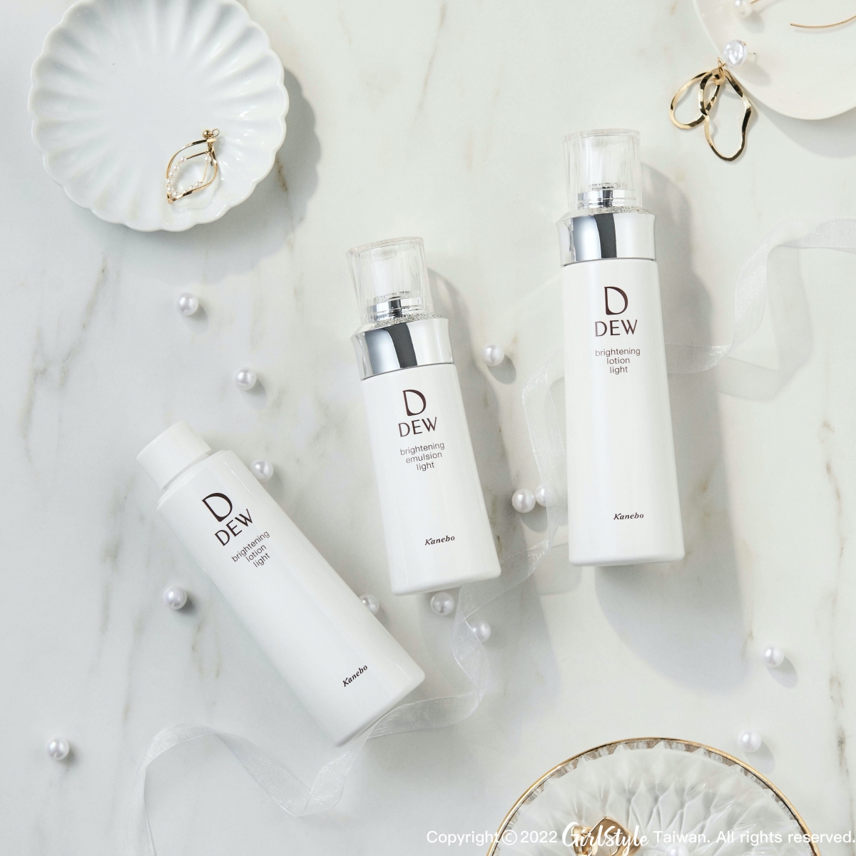 做好保濕護膚之外,『DEW潤白透亮保濕組』的DEW淨潤白系列,濃潤滑順的保濕質地加上裡頭的有效成分,能夠一次達成保濕+明亮膚色兩大功效,讓肌膚提升透明感,是換季時節讓膚況完美呈現的一大關鍵!