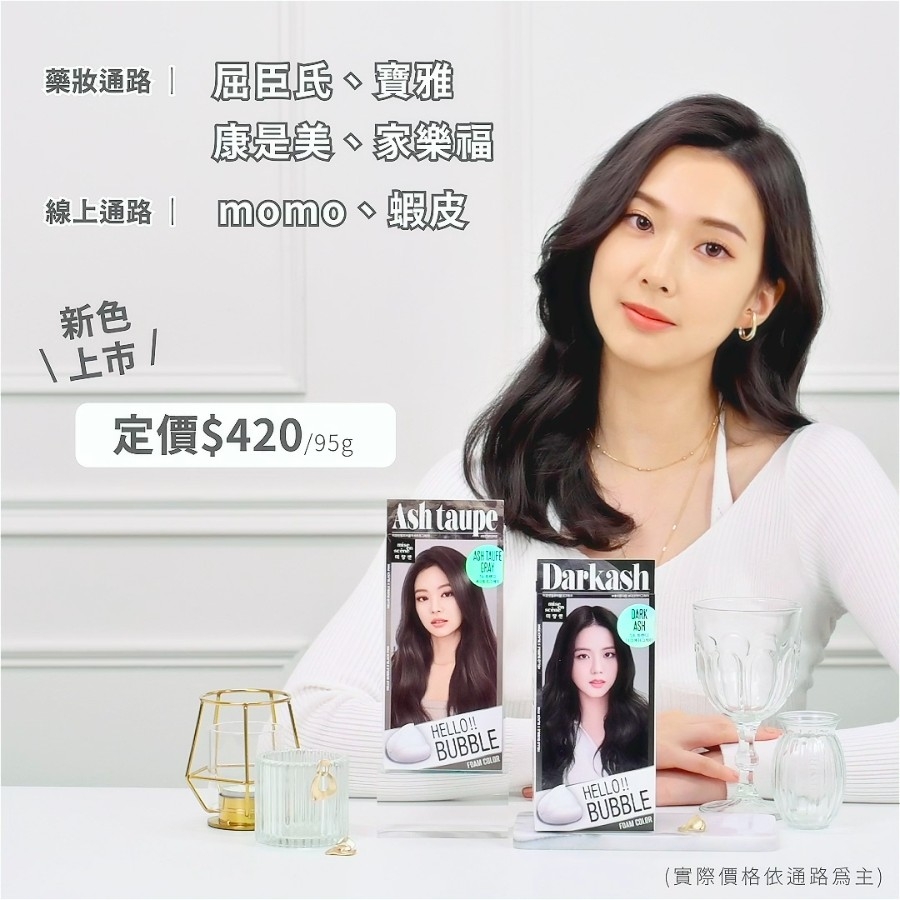 另外魅尚萱「HELLO BUBBLE泡沫染髮劑」也推出人間迪奧Jisoo同款霧灰黑髮色!烏黑亮澤的墨色黑髮,卻又隱約透出霧灰感,瀰漫著滿滿神秘感與女人味。而且兩款新色都能為東方人的原生黑髮套上超美的柔霧濾鏡,連網友們都直呼:「缺貨預感強烈啊~」,走在時尚尖端的你絕不能錯過啦!