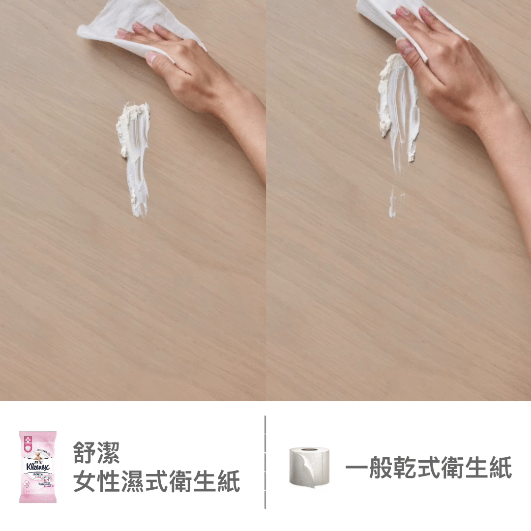 舒潔特別強調「濕擦比乾擦更乾淨」!就是因為女孩們都知道生理期經血不是那麼容易清潔,而且量大時更容易有難以擦拭的血塊,用乾式衛生紙還會越擦越乾,沾黏在肌膚上~但濕式衛生紙輕輕擦拭就能還原乾乾淨淨的狀態,無論是殘留在肌膚上的經血,或是沾黏在私密處的血塊,都能「一擦乾淨」!就能乾淨又清爽的更換衛生棉~