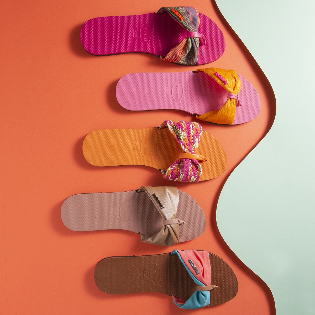 Havaianas 哈瓦仕這次特別打破了品牌標誌性的人字繫帶款式,簡單俐落又有設計感的蝴蝶扭結造型,同時還有美型的視覺效果,能夠修飾腳型、顯腿長、更顯腳背白皙!搭配上糖果色系的撞色鞋面,活潑又不過於花俏非常搶眼,不論是搭牛仔褲或洋裝都有畫龍點睛的效果,可以說是夏日穿搭瞬間時髦的秘密武器,不怕給人太隨性的印象,搭配性超高!