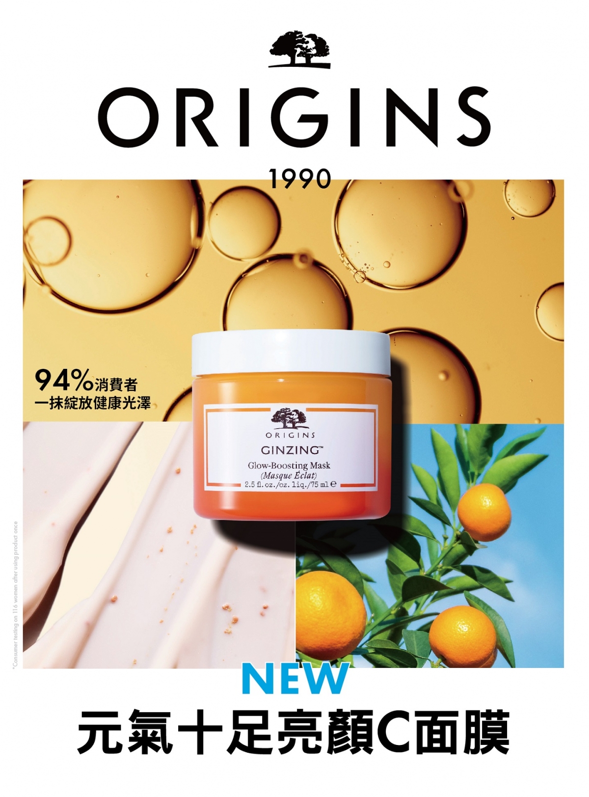補水補光一瓶搞定!ORIGINS再添新成員「元氣十足亮顏C面膜」,發光充電站喚醒肌膚水嫩光!