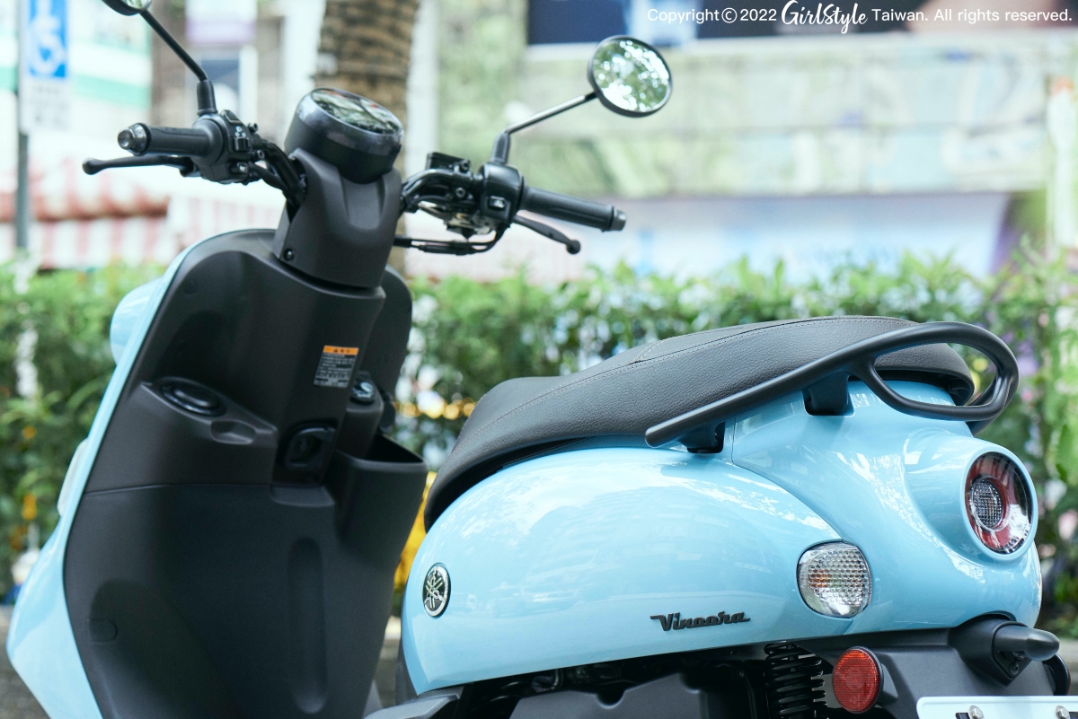 這次有超吸睛的沐青色之外,機能性也是一大亮點!Vinoora搭載125c.c. BLUE CORE引擎,有著優異的油耗表現、745mm低車身設計及94kg的輕量化設計,騎乘上兼顧安定性與舒適感,就算是個頭比較嬌小的女生,也能夠輕鬆駕馭!