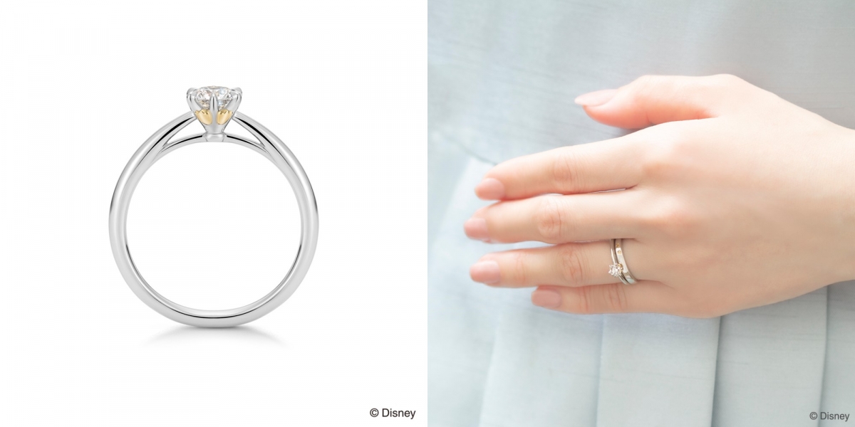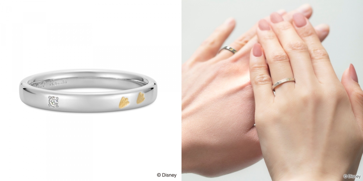 結婚對戒為簡約的外側方圓形戒指,“唐老鴨”的腳印成為一大亮點。凹面恰似“唐老鴨”步行的腳印,給人俏皮可愛的印象。女戒的設計則於戒指表面鑲有1顆閃耀的鑽石,象徵你是專屬於我的唯一。