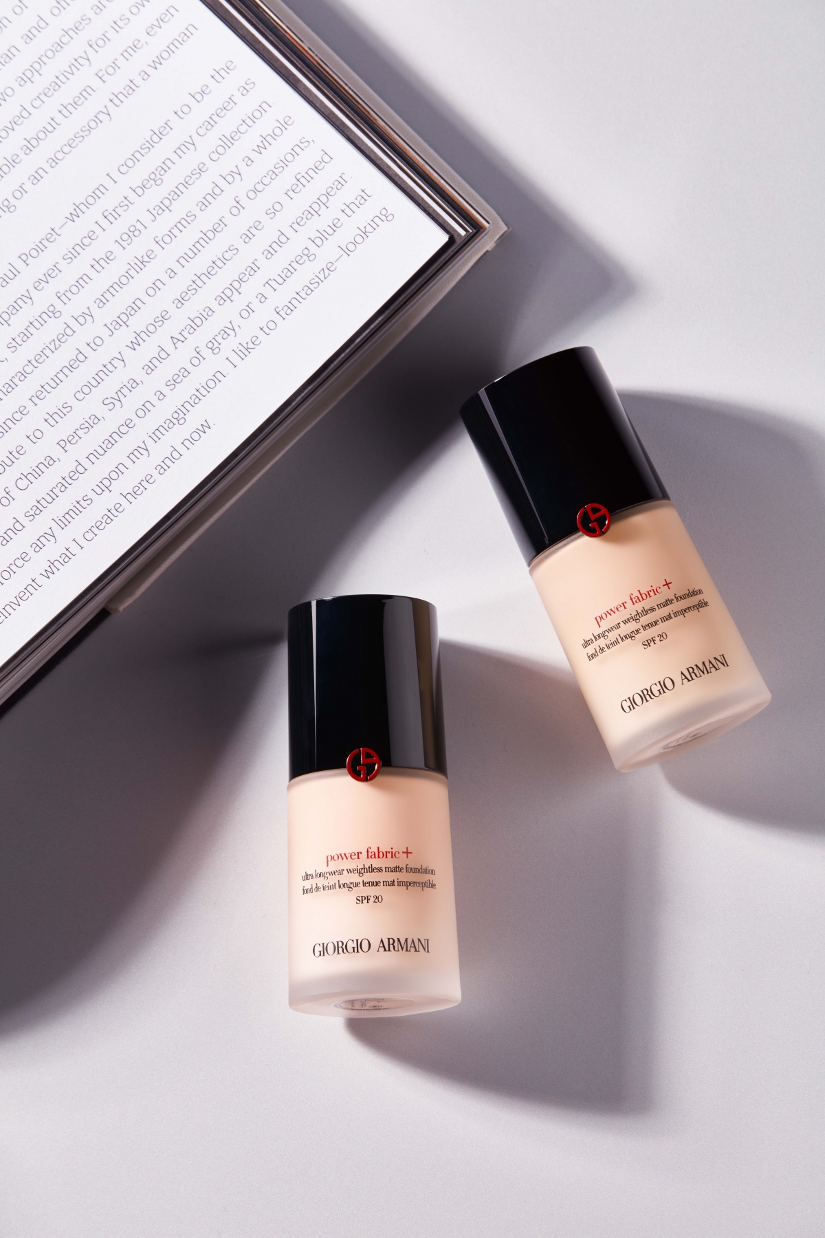 亞曼尼延伸高級訂製服的概念,將肌膚比喻為高訂布料,強調「以光遮瑕」依粉體折射效果柔焦肌膚,隱形毛孔斑點瑕疵,讓肌膚散發絲絨慕斯般自然光彩,遮蓋毛孔與肌膚瑕疵,呈現真正高訂布料的柔嫩精緻感,讓大家不再依賴濾鏡就能擁有猶如天生的「精品美肌」!