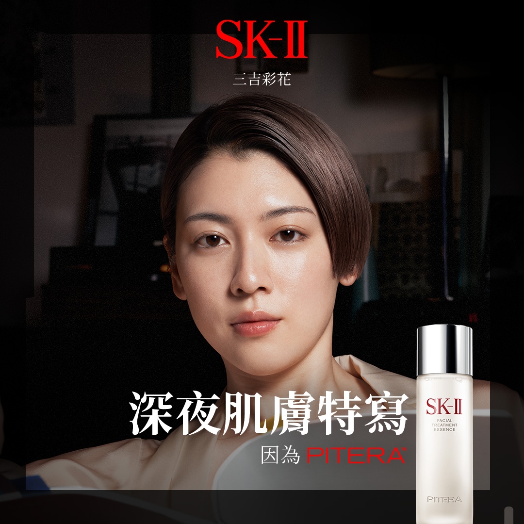 SK-II今年首次以「深夜肌膚特寫」計畫,邀請日本女星渡邊直美、日本演員兼模特兒三吉彩花等品牌大使,展示長期使用青春露下,即使在肌膚通常最不理想的時刻,仍然能在鏡頭前自信展現光澤透亮肌。