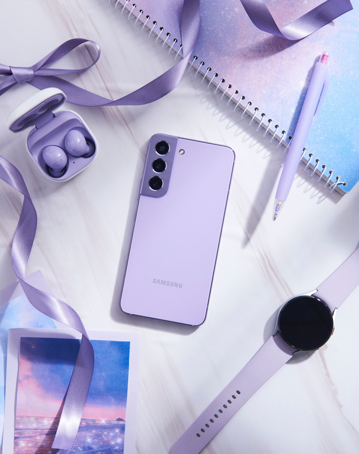 跟小編一樣是紫色控的人請舉手!身為紫色控女孩,除了手機要選用超美的Galaxy S22幻夜紫,當然也不能錯過Galaxy Buds2白紫色耳機,以及Galaxy watch紫色錶款,全部搭在一起真的會美到想哭!讓紫色控欲罷不能,想像一下手拿Galaxy S22幻夜紫手機,搭配紫色耳機跟手錶,除了畫面賞心悅目之外,怎麼看心情就是怎麼好(手比愛心),各位紫色控們真的沒有不收的理由呀~