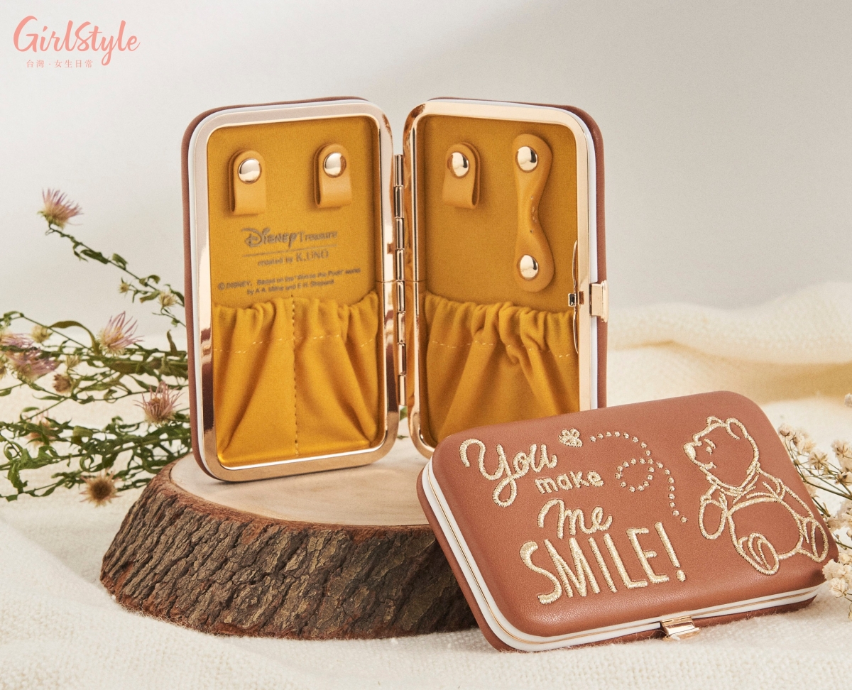 而這次除了三款小熊維尼的飾品之外,還特地推出了「小熊維尼款珠寶盒」。外觀有大大的「You Make Me Smile」的文字設計,配上小熊維尼圓滾滾肚子的圖案刺繡,而內盒採用維尼的專屬亮黃色,並搭配外盒的咖啡木頭色,讓妳每次拿出珠寶都能感受到維尼帶來的溫暖與內心的平靜~配戴飾品不只是裝飾而已,提升質感跟療癒身心才是K.UNO這次最想帶給各位精緻女孩的目的啊~