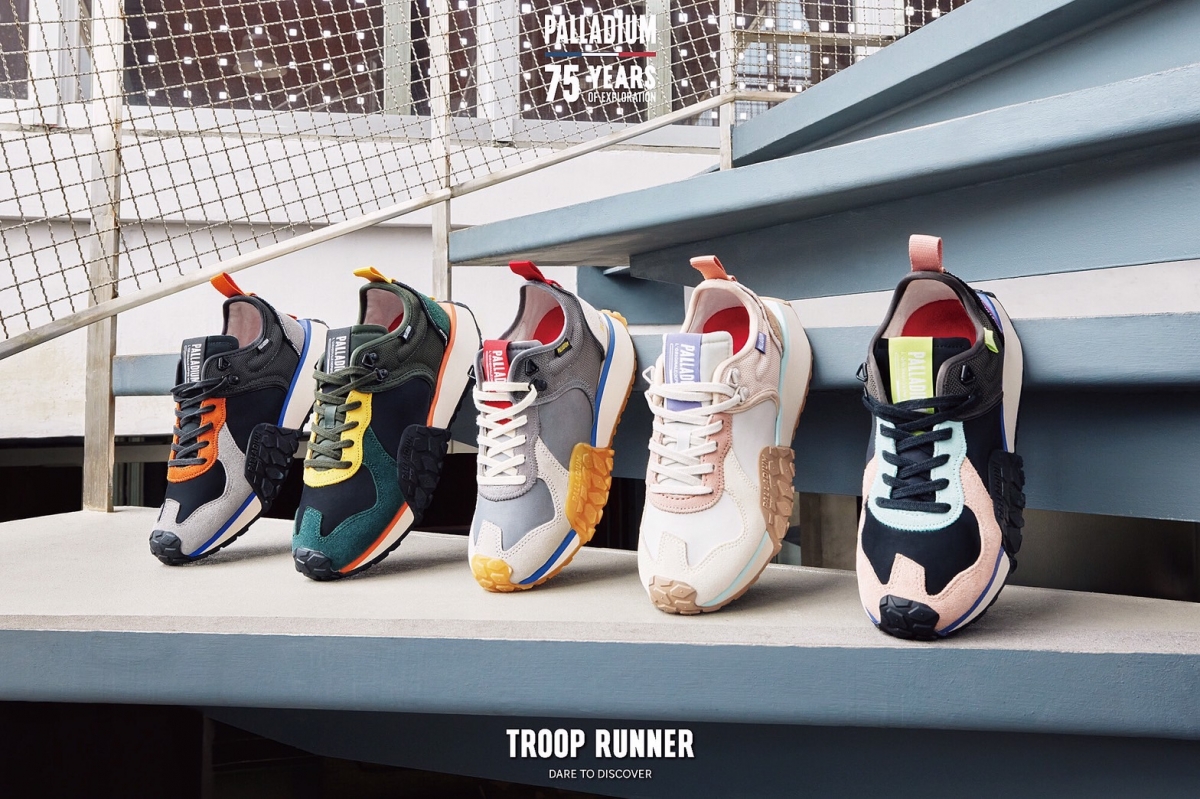 在看完5款的介紹後,百變女孩們準備好要與男友穿哪色秀恩愛呢?今年秋冬就用PALLADIUM的「TROOP RUNNER軍種潮鞋」讓穿搭配色不再困難,新手也能輕鬆駕馭的百變風格!