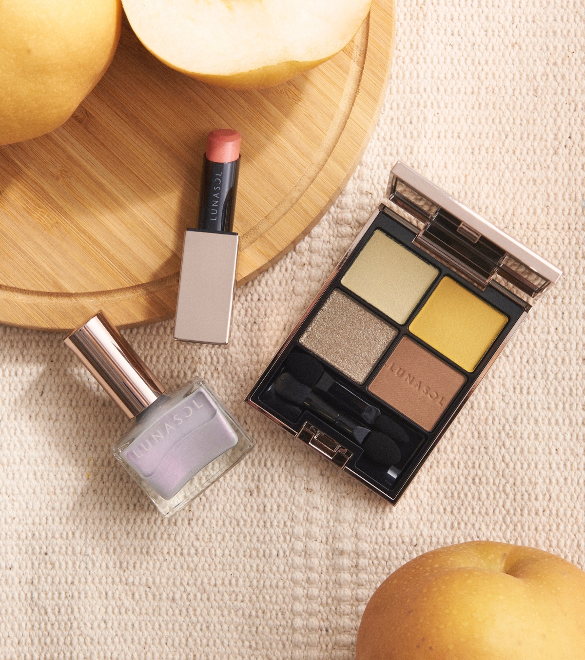 不敢太明目張膽的獵男也沒關係,就用「Mellow Quince」的搭配讓男生一點一滴的臣服於你的溫柔, LUNASOL 晶巧霓光眼彩盒EX24+魅力豐潤艷唇膏EX13+晶巧凝色指采EX26,耀眼卡其的眼彩散發堅韌又溫柔的感覺,淡淡的上妝讓人忍不住激起保護慾。