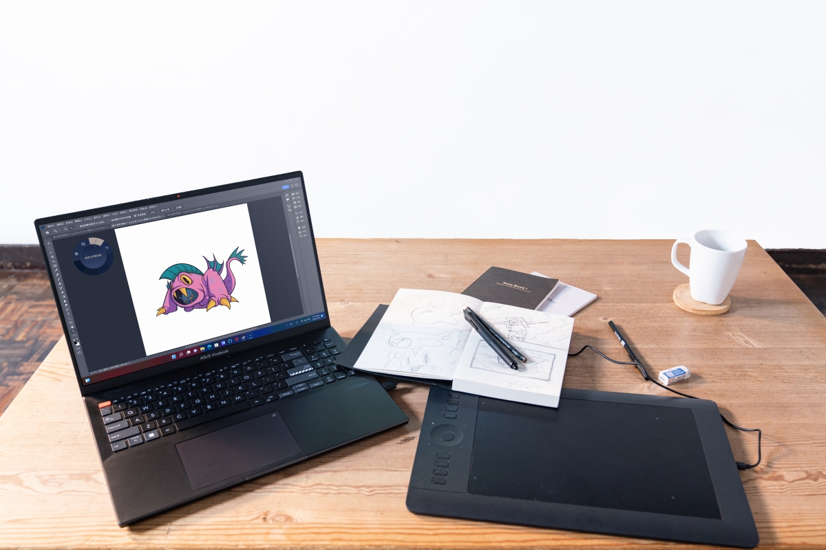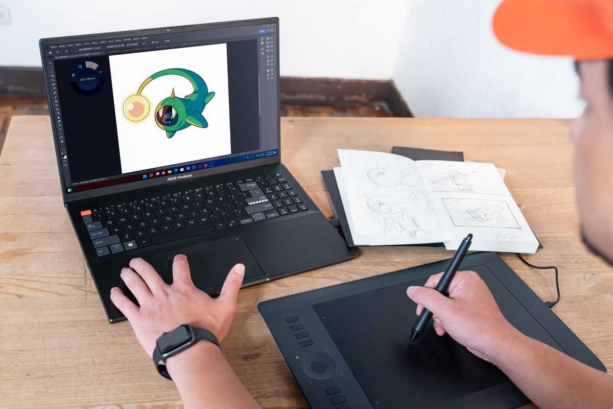 此外,ASUS Vivobook Pro 16X OLED最高搭載NVIDIA® GeForce® RTX™ 3070 Ti 顯示卡,先進的繪圖功能讓創作者減少等待、專注創作,內建的ASUS DialPad虛擬繪圖旋鈕也讓他大讚:「使用上很直覺、便利,讓繪圖效率大幅提升」。對於十分仰賴在咖啡廳工作的71來說,ASUS Vivobook Pro 16X OLED從未讓他擔心過電量,90Wh電力長效續航,不須攜帶充電器也能輕鬆應付工作所需。最高搭載第12代Intel Core™ i7 H處理器,效能無懈可擊,無論工作/遊戲皆快速順暢運行。
