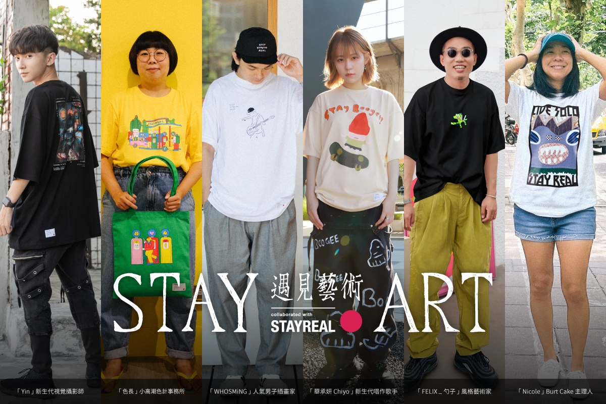 夢想與現實的交織,藝術與生活的結合,以音樂、藝術為品牌DNA的STAYREAL一直致力將當代藝術與品牌潮流態度結合,期望透過精彩的作品,為大家打開當代藝術的視窗。近年相繼以街頭普普藝術大師『Keith Haring』、傳奇藝術家『Basquiat』等推出全新聯名,讓藝術躍上服飾畫布,揮灑藝術創意。在STAYREAL正式邁入第15週年之際,在跨界領域上又有展新突破,由兩位主理人阿信與不二良,共同發起『Stay Art 遇見藝術企劃』,集結6位來自不同領域的藝術家,共同以《KEEP STAYING REAL》為創作主題,透過藝術家們各自擅長的藝術呈現手法,包括:手作拼接、塗鴉、手繪、插畫、視覺攝影等多種面向,展現全新的藝術新潮流風格!由多位藝術家齊力碰撞的藝術火花,將藝術巧思mix生活創意,替日常的平凡注入旺盛生命力,讓生活變得更有意思!