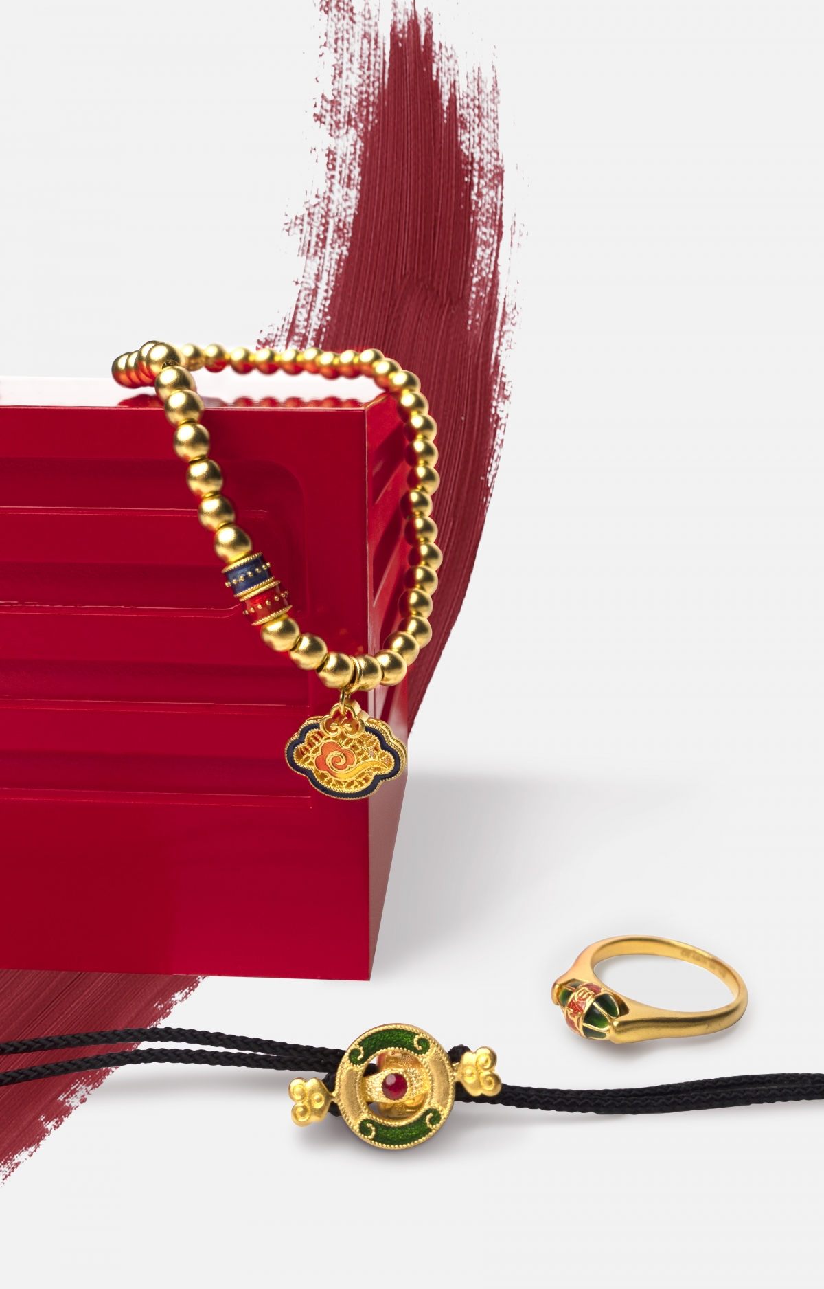 光亮圓潤的「傳承」系列黃金戒指,設計簡潔,線條優美,最新款式更以琺瑯工藝為傳統黃金單品添上了色彩,非凡設計再配搭其蘊含的美好寓意,讓你更快在一系列的飾品中找到你的專屬配搭款式。