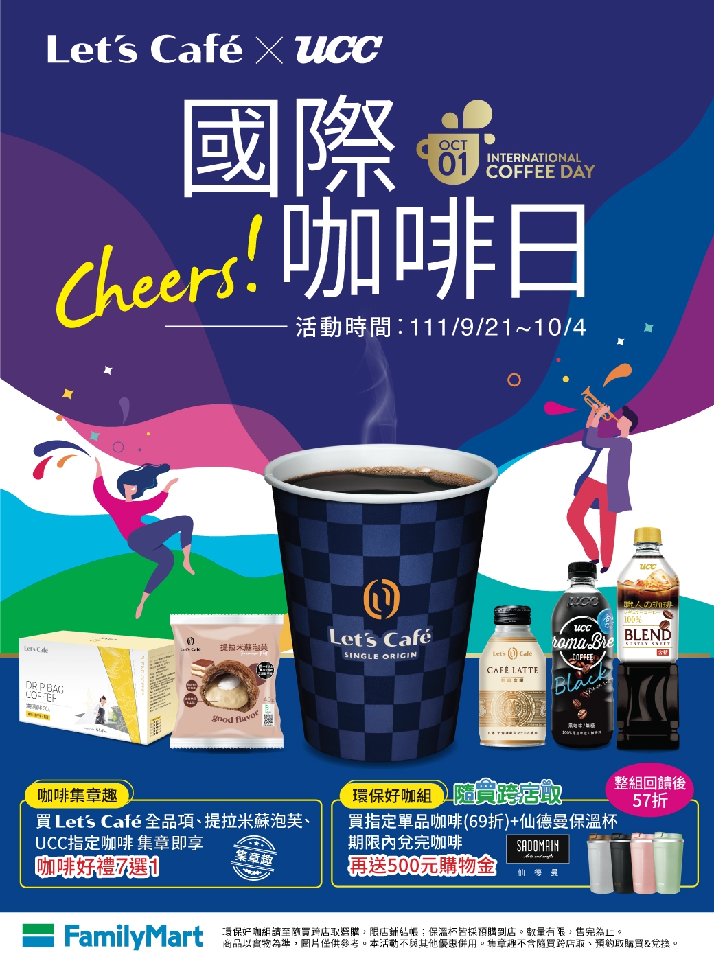 今年,全家便利商店特別規劃了「咖啡集章趣」的活動。自即刻起到10月4日止,只要在全家便利商店購買Let's Café 全品項、提拉米蘇泡芙或UCC指定咖啡等指定商品,都能獲贈一個章,不僅讓消費者能在這個日子用咖啡滿足口腹之慾,集滿一個章就能再加價購兌換許多限量好禮,更是增添趣味。