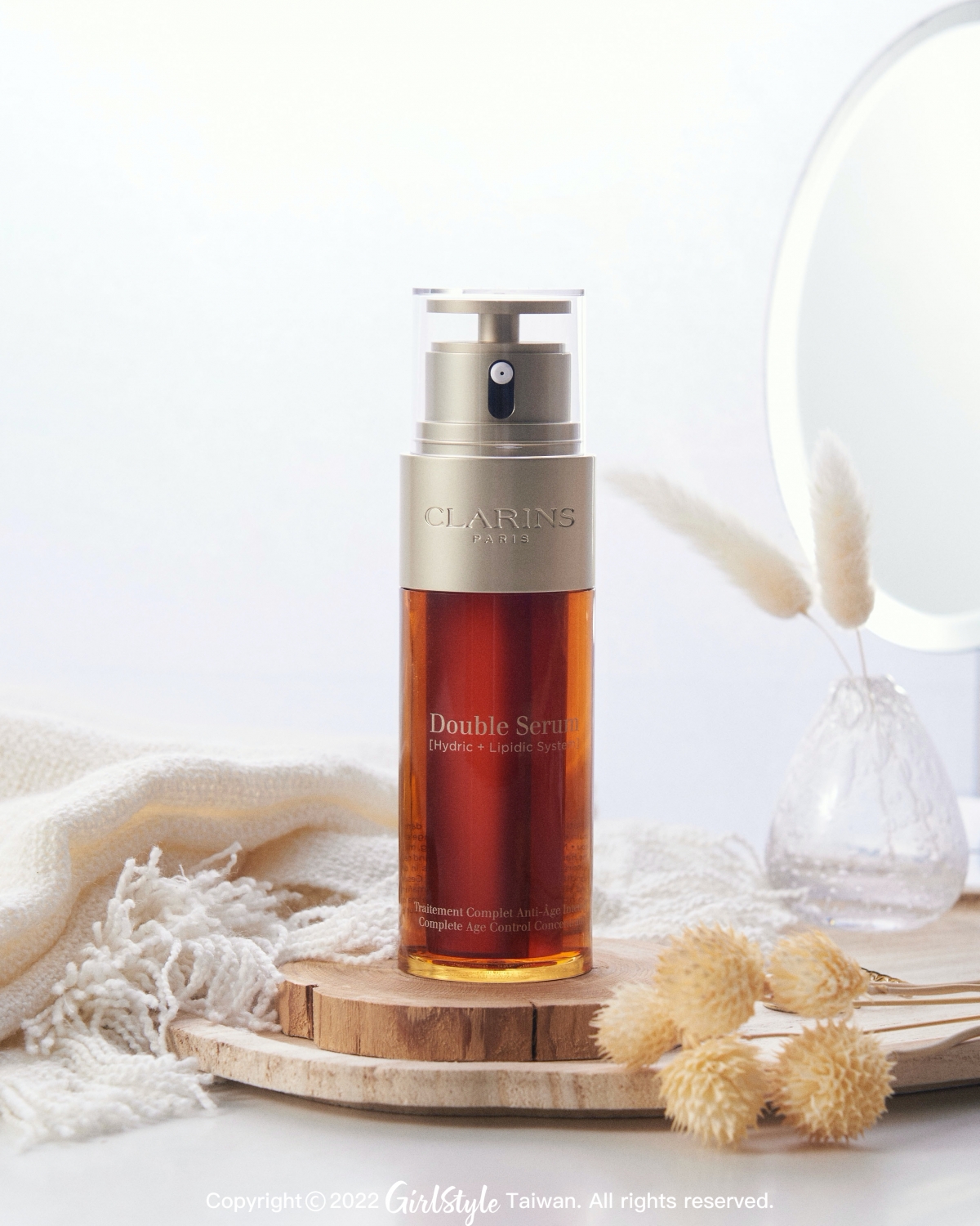 沒錯!想必大家看到這特別的雙管瓶身一定不陌生,那就是克蘭詩長年熱賣的明星精華「黃金雙激萃」!有用過的想必不用多說就能懂它的好,沒用過的就絕對要知道這瓶的「雙能功效」,簡直是穩膚的秘密武器,添加了21種高能活性植萃,以最天然的保養儀式去呵護肌膚,第一步先高效修護讓膚況更穩定,即使在換季時刻也不怕肌膚鬧小情緒,還能讓膚質全面加速煥新再進化,穩定後臉也更加細嫩透亮、緊緻彈潤!換季就是要強穩膚、嫩透亮啦~