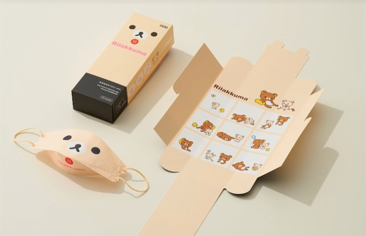 ↓4D款還有一個小驚喜,那就是三款的外盒不僅僅是口罩盒,打開後還有超可愛的9格漫畫,盒子上緣還有熊熊耳朵的造型,太用心了吧~