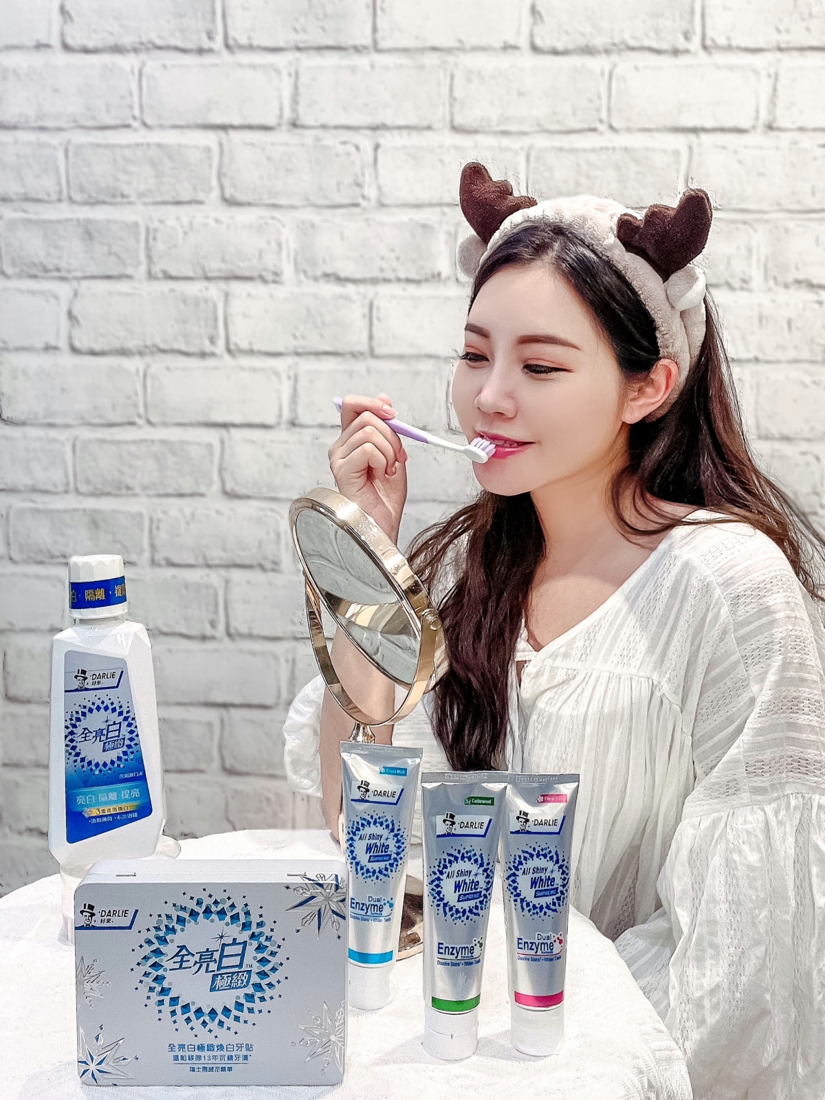 小編推薦使用「DARLIE好來全亮白極緻酵素牙膏」,可以5倍深入溶解多重色素和幫助去除頑固牙漬**,還可以幫助抵禦牙齒染色,裡面含有黑珍珠粉以及細緻的亮白微粒***,配方不但可以滲透齒間,就連琺瑯質也幫你各位都照顧到了呢!只要再搭配正確的刷牙習慣,包準你怎麼笑怎麼吸睛~