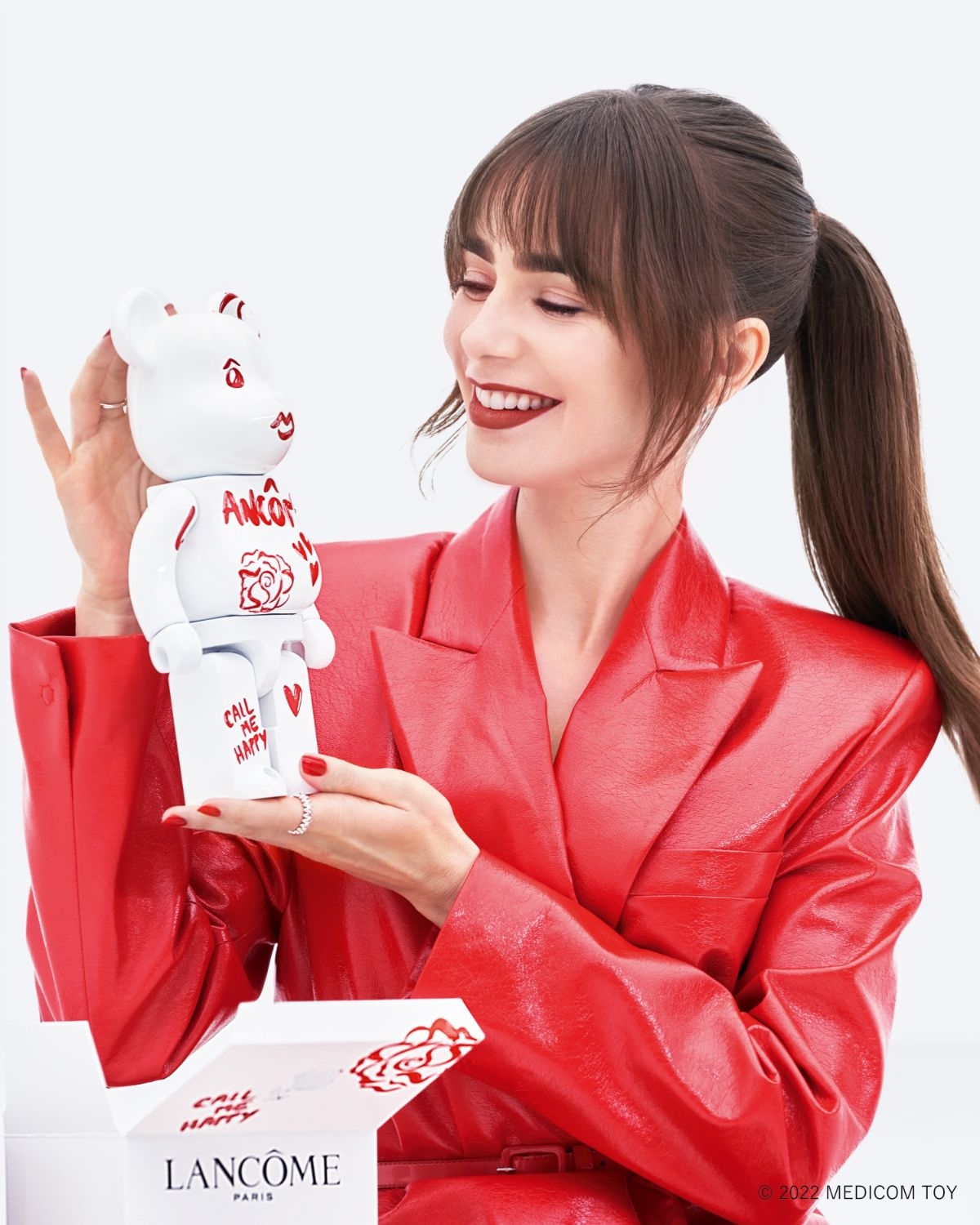 不可能還有人不認識BE@RBRICK吧?日本設計師赤司龍彥創立的知名藝術潮玩品牌BE@RBRICK,經典熊熊公仔幾乎是所有收藏家人手一隻、甚至好幾隻的巨星指標!每年跨界聯名都超有梗的蘭蔻,找來最潮熊熊BE@RBRICK合作真的很會!細看能注意到以「HAPPY」為靈感的全新BE@RBRICK熊,身上不只畫了蘭蔻口紅塗鴉,還融入標誌性的玫瑰花、LANCÔME字樣和俏皮小愛心,整個潮萌的呀~