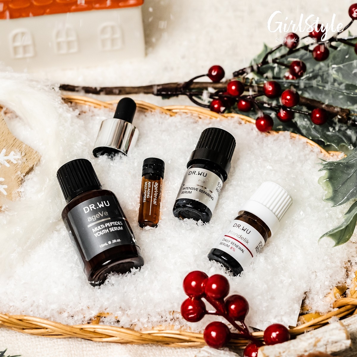 除了使用玻尿酸保養,進入冬季肌膚容易缺油,也有許多人會使用「油保養」法,加強肌膚的滋潤與養護,DR.WU的「角鯊潤澤修復精華」是醫美通路最受歡迎的精華油,效果不輸專櫃,質地輕薄又滋潤好吸收,對所有膚質都是非常好的選擇!若有粉刺、痘痘困擾,想要肌膚更加光滑,則可以使用禮盒裡的「杏仁酸溫和煥膚精華」,以溫和方式去除肌膚老廢角質和瑕疵~若是想要在派對或約會前加強保養,去完角質後加上「超逆齡多肽修復精華和安瓶」,絕對是高效保養必推首選,肌膚光澤度馬上提升好幾度,上妝也更服貼,絕對重新找回母胎美肌!
