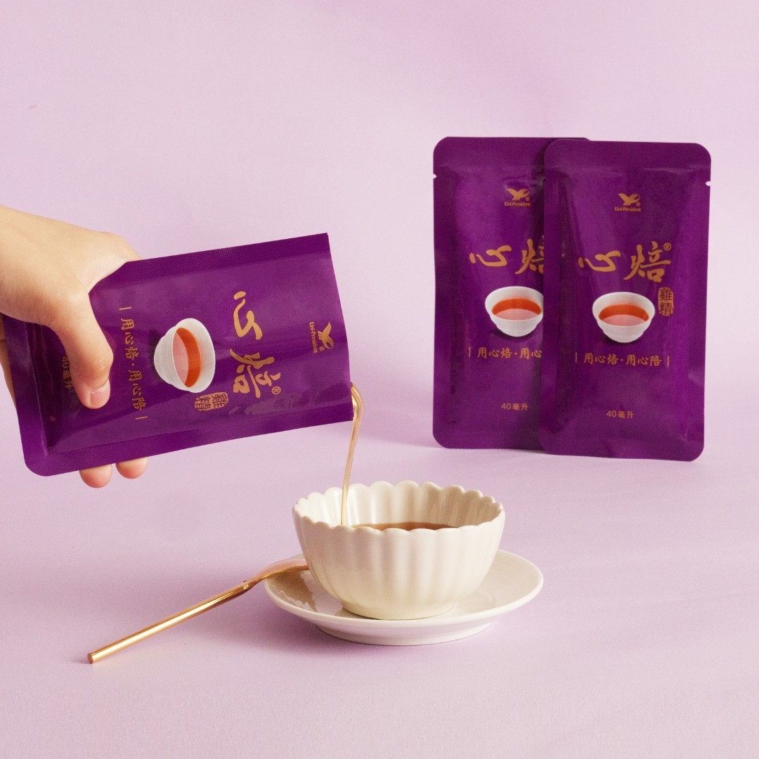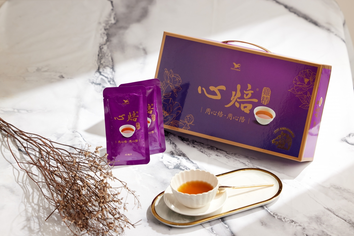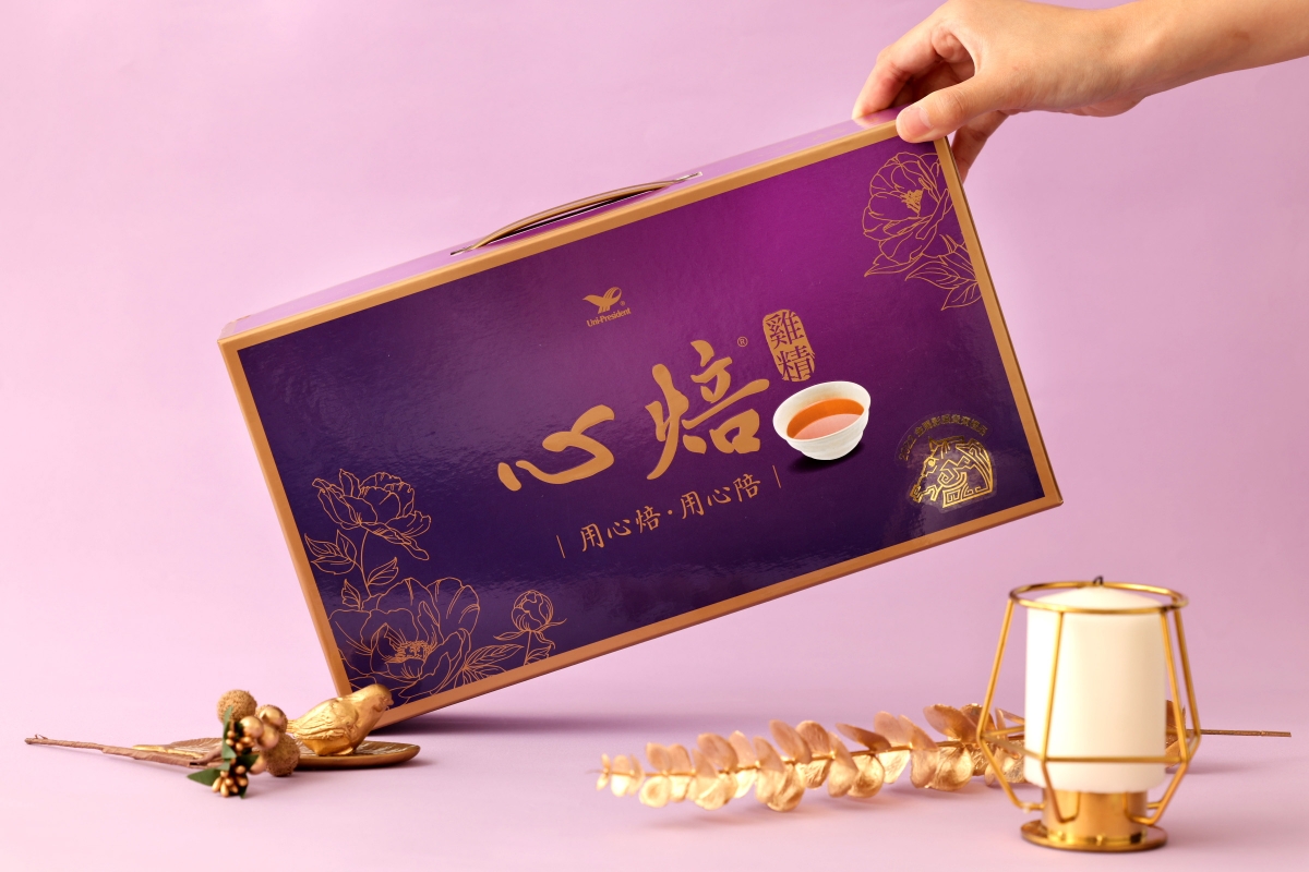 「心焙」從品牌二字,就象徵著品牌的初衷與承諾,從雞隻飼養、農場管理、食材挑選到製程包裝,全程都秉持著「用心焙,用心陪」的核心理念,這款「心焙雞精禮盒」從包裝就是充滿尊榮感、送禮能讓面子滿滿的紫金配色,雞精本身還是市場上少見獨特的複方雞精,光是從用料就是十分講究的「宮廷嚴選等級」,以「花膠」、「猴頭菇」等高貴皇族才能享用的進補宮廷聖品入料,讓雞精結合不同食材的營養,不但有滿滿一袋的雞精精華,更有了「多重複方成份加持」,讓營養價值更翻倍、滋補力更上一層樓!