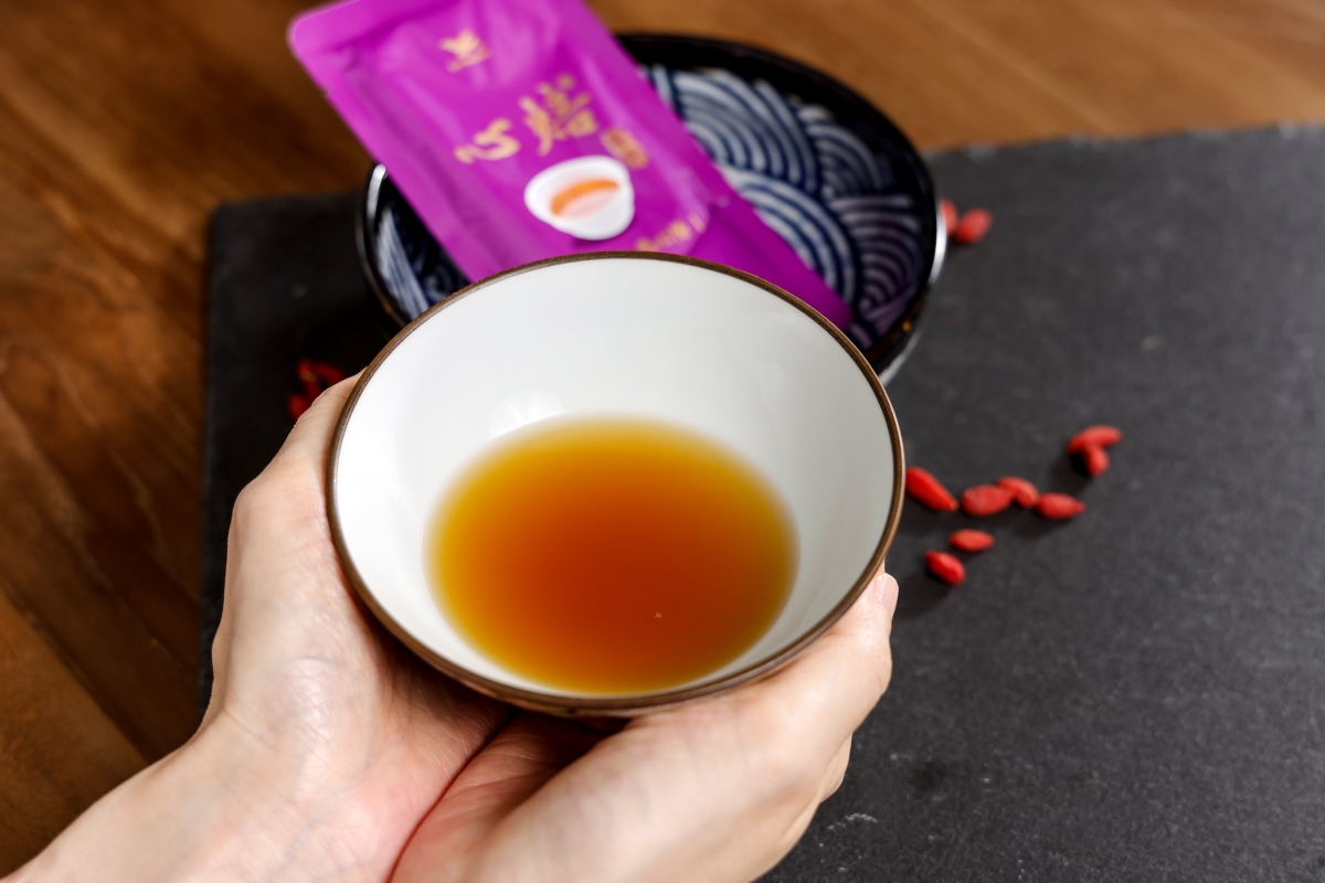 嚴選宮廷進補食材,複方加持多重的滋補。除了在配方中添加養顏珍品「紅棗」、「枸杞」,其中最獨特的是,品牌選用滋補聖品「花膠」,讓「心焙雞精」口感滑順不膩口,每100毫升雞精裡的蛋白質達9.0公克。以長達15小時以上的焙煮,萃取雞肉中的營養,以時間醞釀食材的美味精華,入口滑順,尾韻回甘,最適合電影人及每一位在工作崗位認真的人補充活力。