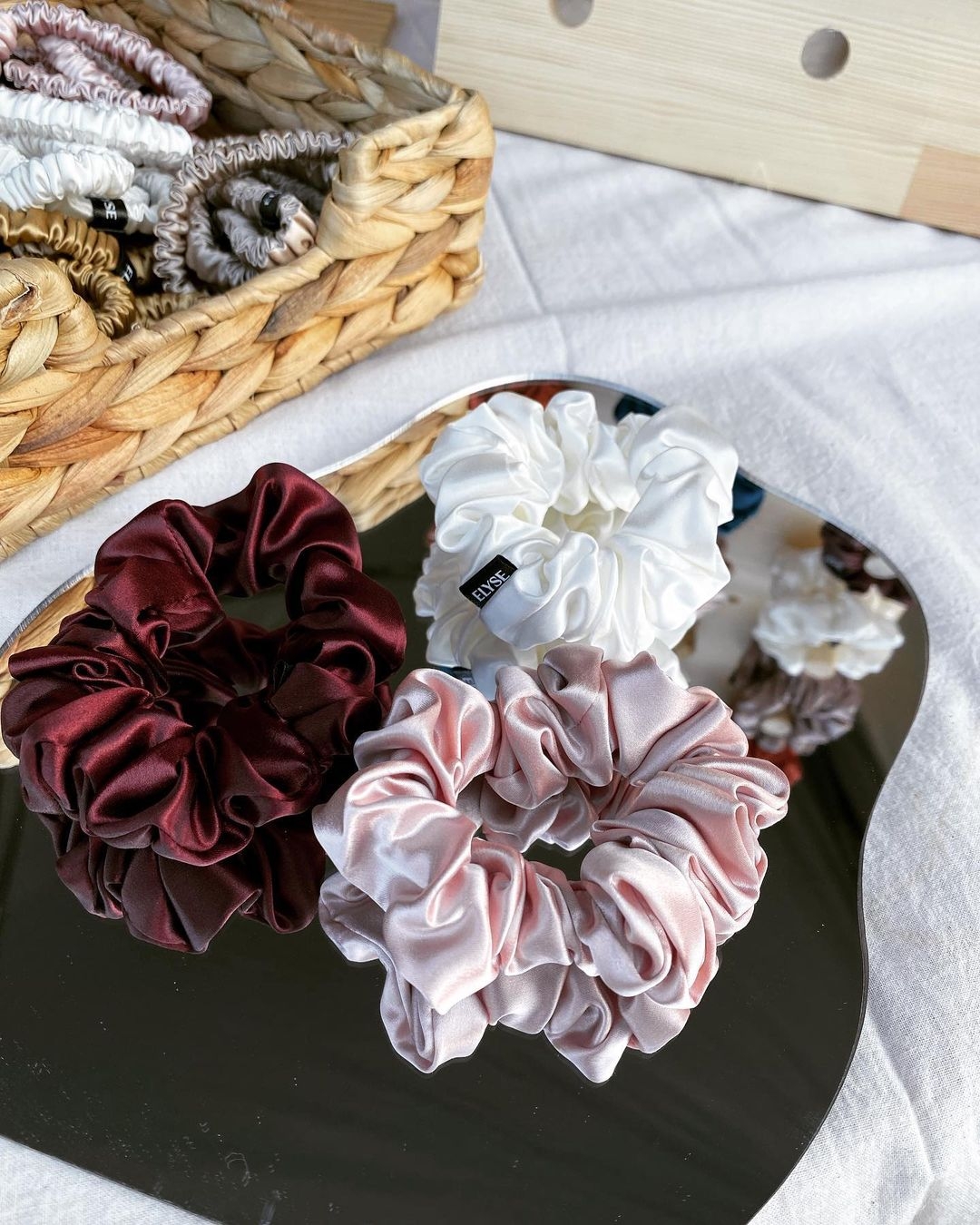 提供了百分百桑蠶絲、真絲綢髮圈+枕頭套