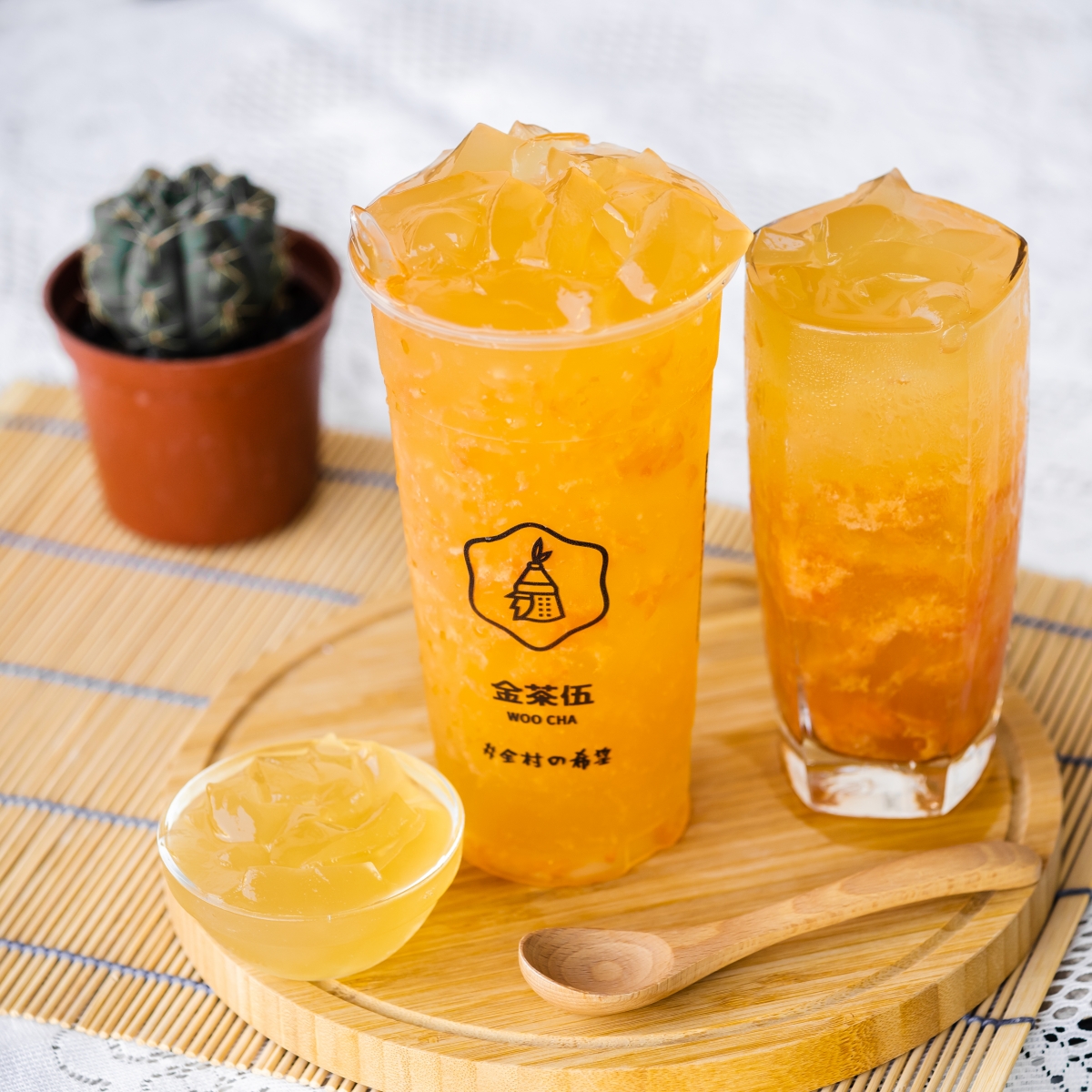 Q粿柳丁茶跟Q粿蜜紅柚這兩杯水果飲品小編是真心大推!除了可以喝到用水果製成的Q粿,甚至還可以喝到滿滿的水果果肉,喝過這麼多次水果茶,第一次喝到料這麼大塊的,連Q粿裡的果肉也多到不行!Q粿柳丁茶超清爽,很適合在夏天的時候來一杯,冬天吃完薑母鴨或是火鍋後也可以解解膩;Q粿蜜紅柚就相較比較酸一些,愛吃酸的水水絕對要點來喝,配上蜂蜜Q粿後飽足感也大大提升,愛喝手搖杯的小編目前還真沒有在其他飲料店喝到這麼特別的水果Q粿,只有到金茶伍才有這樣的幸福感❤️。